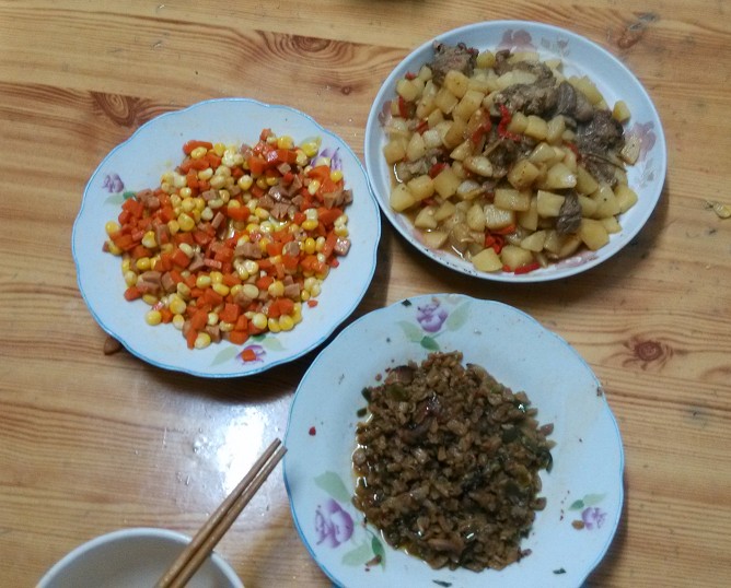 蔬菜里面的胡萝卜和土豆是公认的有营养的食物,可是偏偏大宝就是不喜欢吃。想了各种办法,胡萝卜炒肉或清炒,要不然就和排骨煲汤,土豆呢一般也是切丝炒肉,也和牛肉炖过,可是大宝都不爱吃,要不然就挑里面的肉吃,胡萝卜和土豆正眼都不瞧一眼,对于有点挑食的大宝,让我一直都很头疼。 ![]() 今天我又找到了两款菜式让宝喜欢吃胡萝卜和土豆的方法了,意外的收获呢,让我小有成就感。 ![]() 这几天持续的下雨天,连出门买菜都不方便,趁雨停了匆匆忙忙地买了赶紧回家,今天看到超市的排骨打特价,顺便买了一点,打算用来煲汤。可是结果忘记买煲汤的料了,前两天才喝的玉米煲汤,今天就不想再用玉米了。打开冰箱翻看了一下,看到了昨天买的土豆,灵感突发,就想着用土豆来红烧排骨不知道怎么样。说做就做,上网了解了一下大概做法,然后就尝试了。 ![]() 排骨提前放盐、酱油、料酒腌了半个小时左右,煮的时候先下锅焖一段时间,要不然到时候土豆煮烂了排骨还没熟。焖的时候还可以再放点料酒,这样更容易煮熟。 ![]() 感觉焖得差不多了,再把切成小颗粒的土豆倒下去翻炒,然后再放点辣椒和生姜,因为宝贝们要吃,所以放的是不辣的红辣椒。感觉这样好看一些。翻炒得差不多了再加水小火炖一会儿,等到土豆和排骨都烂了再放调料,出锅。 ![]() ![]() 另外就是宝喜欢吃玉米,之前在宝喜欢吃的黑木耳里放了胡萝卜他会吃,所以今天也依葫芦画瓢,用玉米炒火腿肠时顺便加了点胡萝卜,没想到还真放对了,等我烧好土豆出来时,一盘玉米胡萝卜炒火腿肠都已经被两宝消灭了一半了,大宝说这样炒比单独用玉米炒更好吃,因为以前我经常是单独用玉米炒肉或炒火腿肠的。小宝听了也学着哥哥说:“妈妈,火腿好吃、好吃。” ![]() 这就是今天的晚餐,还没开始吃饭,满满一盘玉米胡萝卜炒火腿肠已经被两宝吃了不少,今天炒了两个菜,剩下的只有一点点的那个是宝爸的最爱,昨天吃剩下的萝卜干炒腊肉。 ![]() 等我端来了土豆红烧排骨,大宝一眼就瞄上了菜里的排骨,一下啃了几块,直说好吃。我说里面的土豆更好吃,你可以试试看。宝往嘴里吃了一块,然后说好吃,接着一块接一块地吃了不少。今天的两个菜里面的胡萝卜和土豆大宝都吃了不少,以后可以偶尔炒这两个菜,让宝喜欢上吃胡萝卜和土豆。 ![]() 看到大宝今天吃了不少平时几乎不太吃的胡萝卜和土豆,让我感觉很意外。原来并不是他不喜欢吃这两种菜,而是我的做法不合他的口味。所以,对于宝贝不爱吃的菜,要换着方法和口味去尝试各种做法,才能找到方法让宝变得不再挑食,喜欢上原来不爱吃的菜。 本作品未经作者许可不得转载,转载请征求作者意见。擅自转载使用,将保留追究其法律责任的权利! 个性签名