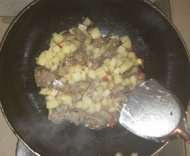 这种炒法很漂亮,而且营养更丰富啊,我家小子不爱吃土豆,学学亲,切成小块的试试