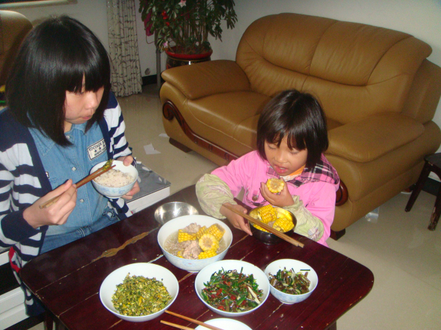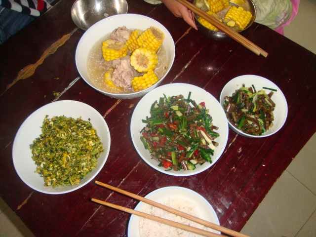 可每次都会有一些其他的活动安排,因此,不是每次都能按计划做吃的! ![]() 这个清明假,大女儿三天假,星期四下午就回到家,星期五我得上班,星期六去了乡下扫墓,爷你好奶奶开心做了很多好吃的给他们吃,算是减轻我的负担了吧! ![]() 今天,星期天,大女儿下午得返学校了,我也想做点好吃的,玉米排骨早点备好了!本想老公在家吃饭,4个人就多弄点菜的,可今天公司聚会,他不回来吃午饭,就母女三个吃了!本以为吃点排骨算了,但还是想多弄点给女儿吃,就问她想吃些什么! 她喜欢吃蕨炒肉,我变更了一下,加了皛头,见有椿叶,这可是野菜,问过她会也就炒了鸡蛋!这样几个菜就备好了! 虽不多的菜,但也还算丰盛,无奈孩子们胃口太小,才吃了一小半而已,尽管我一直叫她们多吃菜少吃饭,但还是剩得多吃得少! 本作品未经作者许可不得转载,转载请征求作者意见。擅自转载使用,将保留追究其法律责任的权利! |