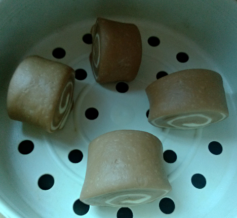 周四下午,我去幼儿园接小羽放学。本来他很开心的,可是一知道我没给他带零食,他马上就大哭了。后来园长给他两颗糖,我们跟他说园长不给我带零食接孩子放学,这是不好的习惯。我确实不想带零食给孩子,但是他又老是看到别人吃馋着。这确实是一个问题呀! 周五下午,我又空手去接孩子,不过,这次我在家里给他准备了一个惊喜。 他这次没哭了,我告诉他回家有好东西吃。 回到家后,他本来要搜零食吃的,但是看到这些馒头,好喜欢 马上就要吃了! ![]() 来!先跟熊猫合个影! ![]() 我把锅里的馒头都装了起来,叫他帮我放到桌子上。 谁知我从厨房出来后就没看到他了。 原来他把馒头拿到三楼小花园来吃了! 我问他是不是野餐,他说是呢! 接下来,我来介绍一下这些馒头是怎么出炉的吧! ![]() 首先,让面包机和面发面。 差不多发好时,我用个小杯,放了块比较大的巧克力,隔热水化开。 这巧克力是别人给的进口巧克力,我们不喜欢吃,所以我就想做馒头来把这些巧克力消化掉。 ![]() 将发好的面团分成两份,其中一份加入巧克力浆,揉至完全 吸收,颜色均匀。 白色面团也再揉揉排气。 ![]() 然后用白面团和黑面团捏成熊猫的形状。我就只做了几个熊猫,因为赶时间去接小羽,没那么多时间去做那么多熊猫。 ![]() 剩下的巧克力面团和白面团的比例在二比一了。 巧克力的变得比较多了,因为做熊猫时巧克力的用的不多。 我把巧克力面团分成两分,再上白面团共三分,先分别将这三份擀平,然后叠加在一起。 再擀开来,然后卷起来,再切块,就成了双色馒头了。 ![]() 四个双色馒头放电饭锅里蒸。 ![]() 哈哈,我忘了我还用小熊的模具做了几只棕熊,跟熊猫一起在锅里蒸。 ![]() 我是用电磁炉定时蒸的,然后去接小羽,回来才开盖的。 打开来看后,有惊喜又失望,为什么那一只小熊会变成这样呢? 怎么总是不能做到完美呀?我真的不知道失败在哪里,希望有经验的指教一下呀! ![]() 蒸好的熊猫,还算成功! ![]() 败笔呀,为什么呢?其他的都好好的,为什么只有它这样? 拍完照,我想赶快消灭了它,但被小羽拿过去了,他帮我消灭掉了。 本作品未经作者许可不得转载,转载请征求作者意见。擅自转载使用,将保留追究其法律责任的权利! 个性签名