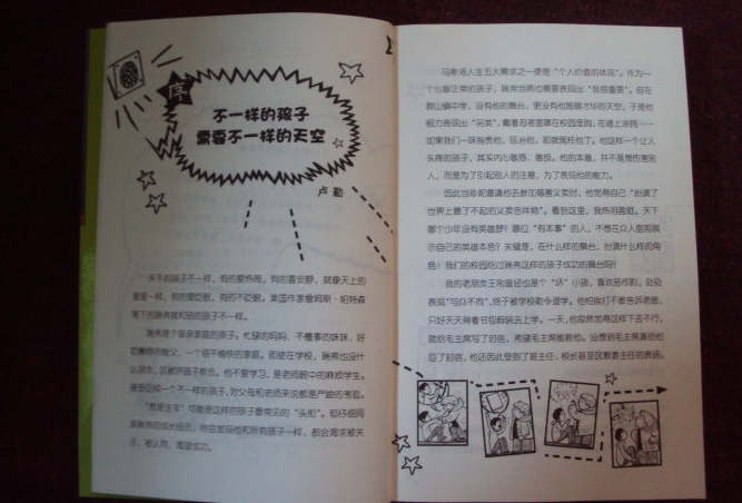 感谢@宝宝地带网@接力出版社,感谢你们提供的阅读机会。 说到上学,我们那一个人不是从漫漫上学路上走过来的呢?回忆起自己的上学时光,感觉还是蛮美好的,我自己算是比较喜欢学习的那一种类型,学习成绩也还可以,是老师眼中的好学生,所以我的上学时光还是阳光灿烂的,但是阅读我收到的这一本《上学不容易》的书,书中的主人公瑞弗的上学路就不是那么地一帆风顺了,小男孩瑞弗在别人的眼里就是一个让人头疼的孩子,内心敏感善良,为了引起别人的注意他做出来的事情在老师和家长的眼里就是比较出格的了,于是瑞弗的麻烦就来了。 ![]() 知心姐姐卢勤在序言《不一样的孩子需要不一样的天空》中说,天下的孩子都不一样,有的爱热闹,有的喜安静,就像天上的星星一样,有的爱眨眼,有的不眨眼。对啊,每一个孩子都是独立的个体,都有自己的天生禀赋,并不是每一个孩子都是老师和家长眼中的乖孩子和好学生,碰到如瑞弗这样特别的孩子,我们的老师和家长应该怎么对待呢?是强势打压还是因势利导呢?我相信懂教育的老师和家长会因材施教,会根据每一个孩子不同的个性来引导孩子健康成长。 ![]() ![]() 这本书一共有60章的内容,不过每一章的篇幅不是很长,而且还配有诙谐可爱的插图,阅读起来还是很有趣味性的。不过我家孩子还小,才是幼儿园小班的孩子,等他再长大一些以后,我相信他一定会喜欢这本书,并且喜欢上这个故事的主人公瑞弗的。 ![]() 故事是以主人公瑞弗第一人称的口吻来叙述的,故事一开始,瑞弗就说了自己是倒霉的事一件接着一件啊!因为妈妈打工的餐厅被一场大火烧毁了,妈妈失业了,就没有钱付房租了,只好带着瑞弗和妹妹搬到城里的姥姥家,于是瑞弗离开了群山镇中学,到了城里开始新的生活。不过很幸运的是在多那代罗老师的帮助下,瑞弗很顺利地被卡桑德洛艺术学校录取了,不过瑞弗高兴得不能太早,在第二年艺术节过后,所有的学生需要重新申请,不能完成艺术作业的学生将不能继续留在卡桑德洛艺术学校学习,所以瑞弗一点儿都不敢松懈。 ![]() ![]() ![]() ![]() 可是因为瑞弗是刚转来这个艺术学校的,同学们开始捉弄瑞弗,这让瑞弗的感觉很不好,瑞弗经常跟里奥说话,其实这个里奥不是真人,只是生活在瑞弗想象中的兄弟,因为真实的里奥在瑞弗三岁的时候就去世了。不过瑞弗很喜欢和里奥聊天,自己有什么想法都会跟他说。在瑞弗伤心的时候,里奥建议他开始“体验生活”行动计划,瑞弗接受里奥的建议,他要在艺术节到来之前的每一天都做一件不一样的事情,也就是要做195件不一样的事情呢。 ![]() 就在瑞弗努力的每一天都做一件不一样的事情的时候,姥姥的照片告诉瑞弗关于爸爸的一些信息,好奇的瑞弗决心去寻找爸爸,可是找到的海尔瑞理发店的理发师非常凶,吓得瑞弗拔腿就跑。还有学校里有两个学生经常欺负瑞弗,他们还给瑞弗做了一个假的个人主页,这让瑞弗很生气,决定要进行复仇计划,他在学校里结识的好朋友怪胎马蒂跟着瑞弗一起实施这一次的行动。 ![]() ![]() 可是瑞弗的行动失败了,他被学校里的老师发现了他偷别人的雕塑作品,还毁坏了这个作品,瑞弗的妈妈被老师叫到学校里接受学校的处分,妈妈非常生气,并且不再相信瑞弗了,瑞弗觉得很伤心,也觉得自己很倒霉,怎么就被老师发现了呢?不过就是在瑞弗接受学校留校察看处分的时候,瑞弗也没有忘记他的体验生活的行动。 ![]() ![]() 圣诞节过后,瑞弗终于又可以上学了,瑞弗请马蒂跟自己来一次跟踪行动,就是跟踪海尔瑞理发店的理发师,可是瑞弗的伎俩很快被海尔瑞识破了,不过海尔瑞告诉瑞弗,要想知道关于爸爸的事情,就回家问妈妈吧。在老师带着学生们参观博物馆的时候,瑞弗的麻烦又来了,因为门口的警报器响了,警察很快就来了,最后在瑞弗背着的包里找到一支钢笔,可是这个不是瑞弗的包,是马蒂的包让瑞弗帮他背的。可是事情澄清以后,瑞弗也失去了好朋友马蒂,还被同学们在背后说陷害朋友,瑞弗很不好受。 ![]() 课堂上,老师让瑞弗展示自己的艺术作品,可是受不了同学们的目光的瑞弗自顾自地离开了课堂,回到家里,拿了钱就去坐汽车,他决定要回到群山镇,回到以前的地方,他看到了好朋友,得到了大家的欢迎,后来瑞弗打电话给妈妈告诉自己很好,妈妈最后也决定回到群山镇,同时还带着瑞弗去墓园看望了爸爸,原来爸爸是一个为了国家牺牲的英雄。这让瑞弗的心里为自己的爸爸骄傲。故事的结尾,瑞弗在群山镇举办了艺术展,大家都很喜欢瑞弗的作品,瑞弗觉得高兴极了。 ![]() ![]() 读完这本书,我真的觉得瑞弗是一个很有个性的孩子,不过好在瑞弗有一个包容他的妈妈和热心帮助他的老师,我相信在大家的爱的呵护下,瑞弗的人生之路一定会越来越好走,将来一定会是一个优秀的人的。 ![]() ![]() 本作品未经作者许可不得转载,转载请征求作者意见。擅自转载使用,将保留追究其法律责任的权利! 个性签名