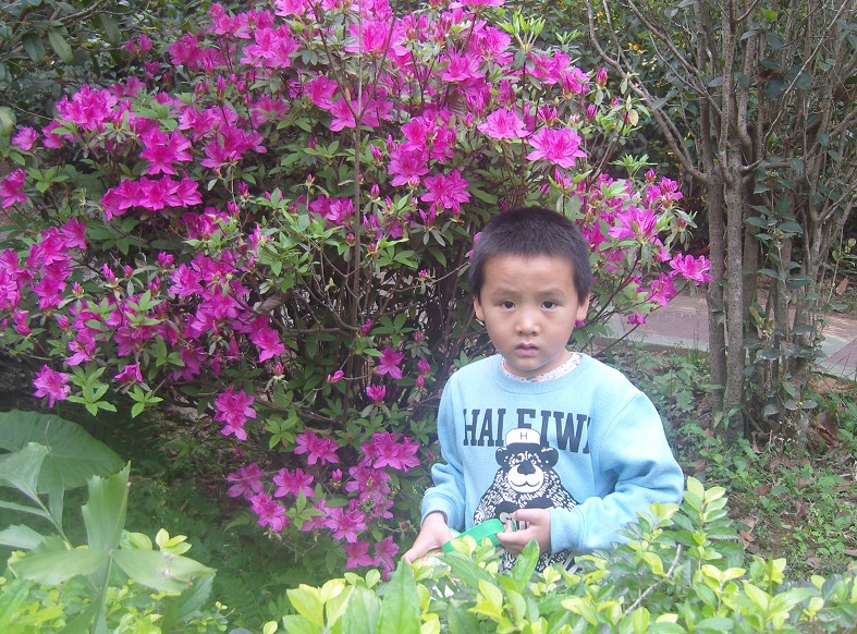 不过,今年的春天倒是带着宝去过不少景点和公园,也看了不少鲜花美景,只是很多花都叫不出名字,只知道很漂亮。看多了美女配鲜花,也来观赏观赏我家的帅哥配鲜花吧,呵呵。