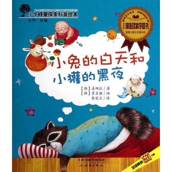 参与人员: 妈妈和宝宝 阅读绘本: 《小兔的白天和小獾的黑夜》 绘本特色: 了解不同动物的生活习性 适读年龄: 3岁以上 阅读心得: 《小兔的白天和小獾的黑夜》来自《小牛顿爱探索科普绘本》,这套书是科普书里比较低幼的,虽然我觉得不算太严谨,但是趣味性还是不错的。这本用小兔和小獾的一天来讲述不同动物的生活习性。但是有个明显的错误,就是说是獾,其实画的是浣熊,好在獾和浣熊都是夜间活动的动物,不知道是翻译的错误还是原版的错误。我们能够发现这个问题,是因为我们对獾和浣熊都非常喜爱,喜欢獾是因为我有一套《达尼的故事》,喜欢浣熊是因为《魔法亲亲》,对浣熊和獾的区别,我还特意给孩子讲解过。 故事说的是小兔早上起床,吃饭,上学,而住在楼下的小獾却吃完饭,刷牙漱口,准备上床睡觉,正相反,等小兔放学回家,准备吃完饭的时候,小獾却起床,吃造访,准备上学。兔子的朋友有小猪,绵羊,小鸡等,这些都是白天活动,晚上睡觉的动物。而小獾的伙伴有猫头鹰,刺猬,老鼠和小猫,这些都是喜欢昼伏夜出的动物。书后有一些习题和互动,还是设计的不错,譬如让孩子判断谁是白天活动的,谁是夜晚活动的,增加了趣味性。