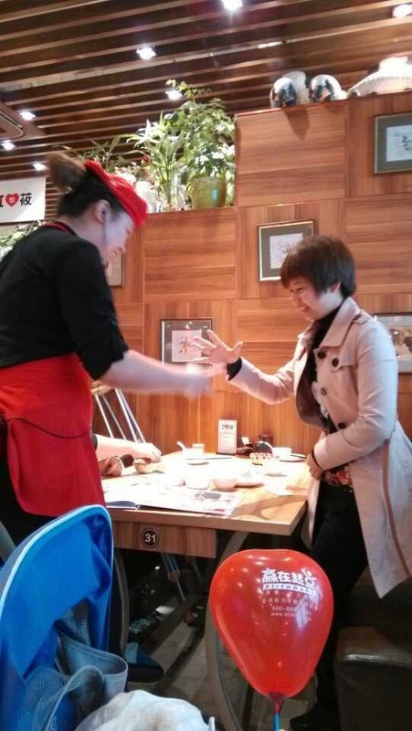 在等候了约十分钟后,我们入席了。点菜完毕,有服务员主动要求我们猜拳。游戏规则是猜赢一次免5元餐费。每人都可以向服务员挑战,赢了后,金额可累加,输了就不能在继续了。我开局就败下阵来,总算老公争气连续赢了三把,那就减了15元餐费。 惊喜三: