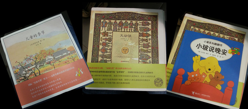 悦书坊的奖品来了 坚持了6个月的每日阅读,昨天收获了奖品,还没看到亲们晒书,我会不会是第一个呀? 奖品是100元以内的绘本,在QQ群里分享书单和照片,先到先得。话说我们公司是限制QQ的使用的,客户端根本登陆不上去,网络版有时行有时不行,可是那天运气特别好,还真给我登录进去了,但是不能下载书单,我在群里喊了一嗓子,可爱的版主就把书单贴在聊天窗口了。 好书还挺多,首先映入眼帘的是《夏日里的天空》《诺亚方舟》《狐狸夜游记》,但是由于我已经买过了《夏日里的天空》,就没考虑,这三本我都看过,非常不错。之后我就发现了三本高大上的书《儿童的季节》《ABC之书》《天动说》,一算价格,超了,要不怎么说是高大上呢,这三本就是安野光雅的《美丽的绘本》系列,在当当打5.1折还63.7呢,这些书价格昂贵,折扣难遇,而且不太适合低幼,所以我一直都没收,现在有了机会,当然不能放过。为凑100元,我又把《ABC之书》换成了心仪已久的《爱心树》。马上通知版主和管管,结果让我失望的是《爱心树》已经没有了,我只好换了《小玻》,《小玻》也是我一直想换的书,吸引我的是画风和双语。 还好我手快,这三本很快被管管确认下来,开心!昨天收到了书,《儿童的季节》《天动说》还是给我很大的惊喜,不愧于我定义的“高大上”,的确是非常棒的书,囤书也值得! ![]() 《儿童的季节》是无字书,从春天开始讲到冬天,再回到春天,画面淡泊而优雅,娴静而清爽,是我喜欢的风格。最后一张的春花烂漫着实打动了我,无限遐想... ![]() ![]() ![]() ![]() ![]() ![]() 《天动说》古朴典雅,围绕着天动和地动,揭开了人类探索真理的旅程,把看似枯燥的理论深入浅出地跃然纸上,确实是值得大人和孩子阅读的经典。后面附有后记和历史的大事年表,非常严谨。 ![]() ![]() ![]() ![]() ![]() ![]() 《小玻》就不用多说了,很多亲都晒过了,很不错的低幼书,也是很不错的英语启蒙书,打算分数够了再兑换一次,希望小玻能等我! ![]() ![]() ![]() ![]()