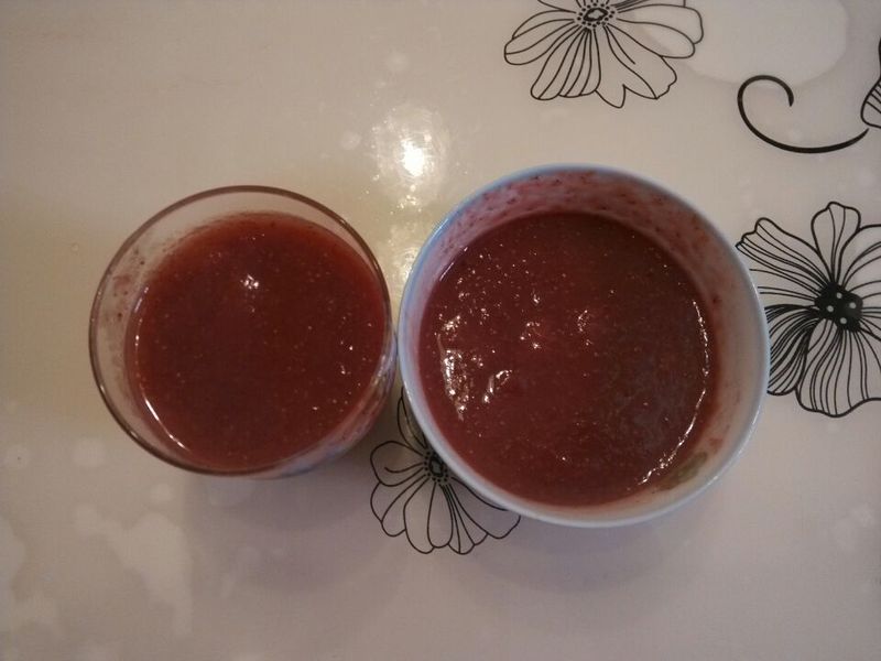 这几天在家瞎折腾,给儿子昨晚草莓奶昔之后,不是还剩了一些草莓吗,就参照方子,做了草莓酱~~