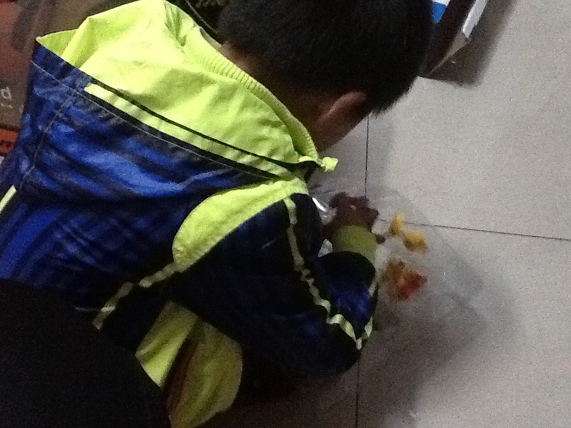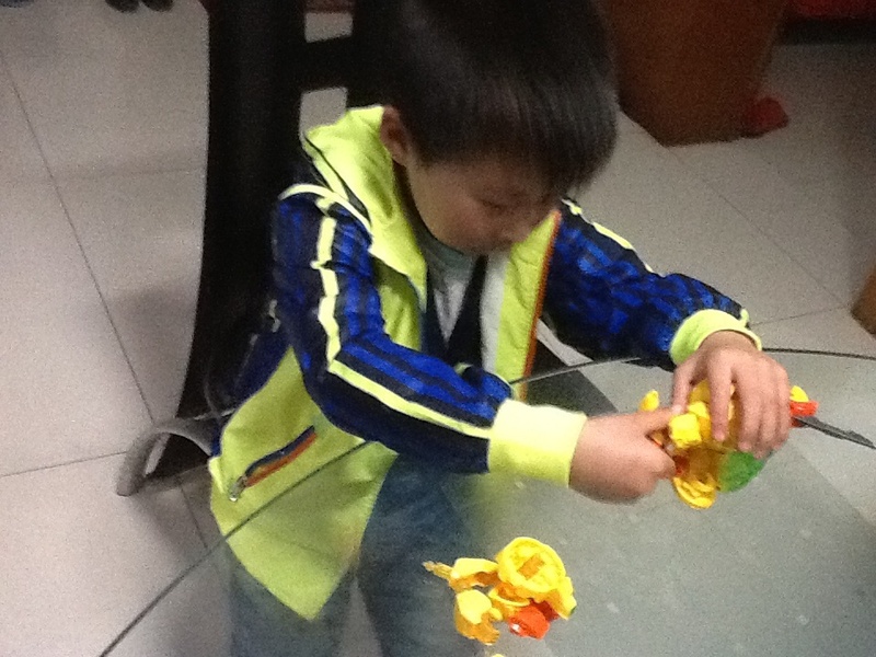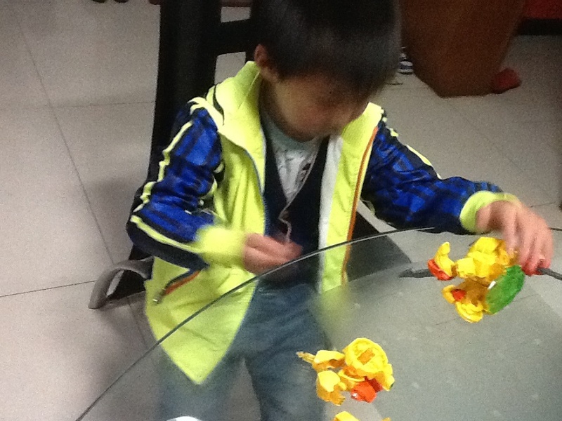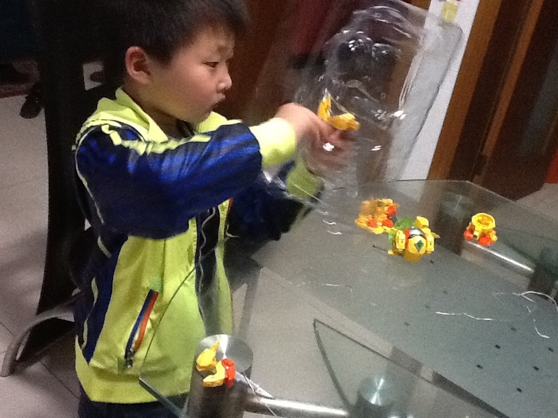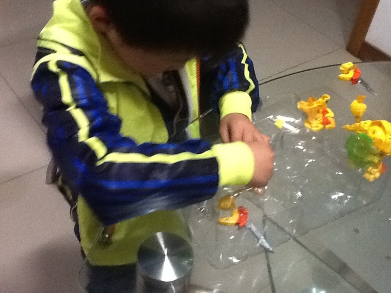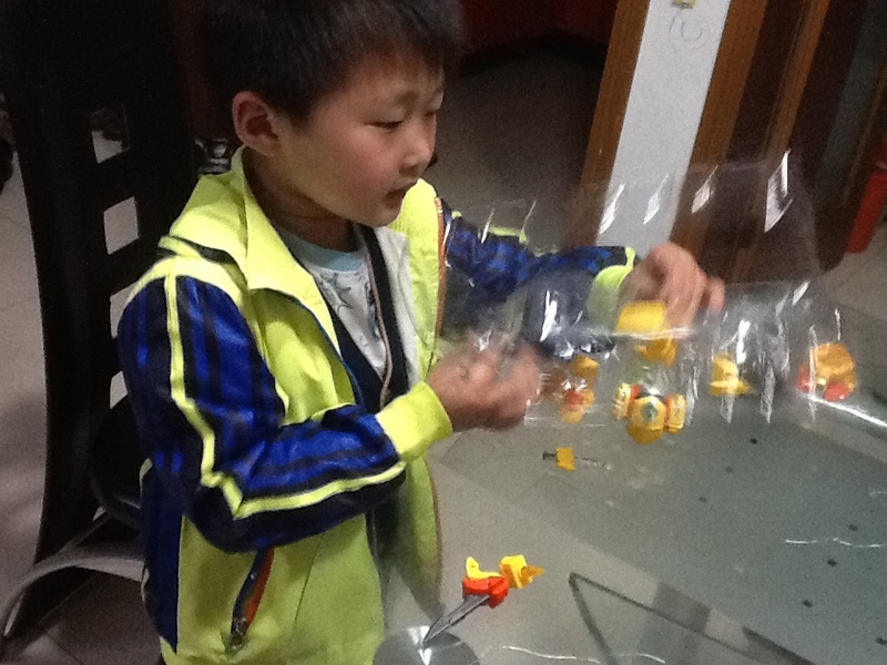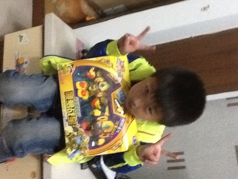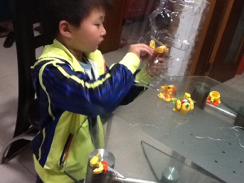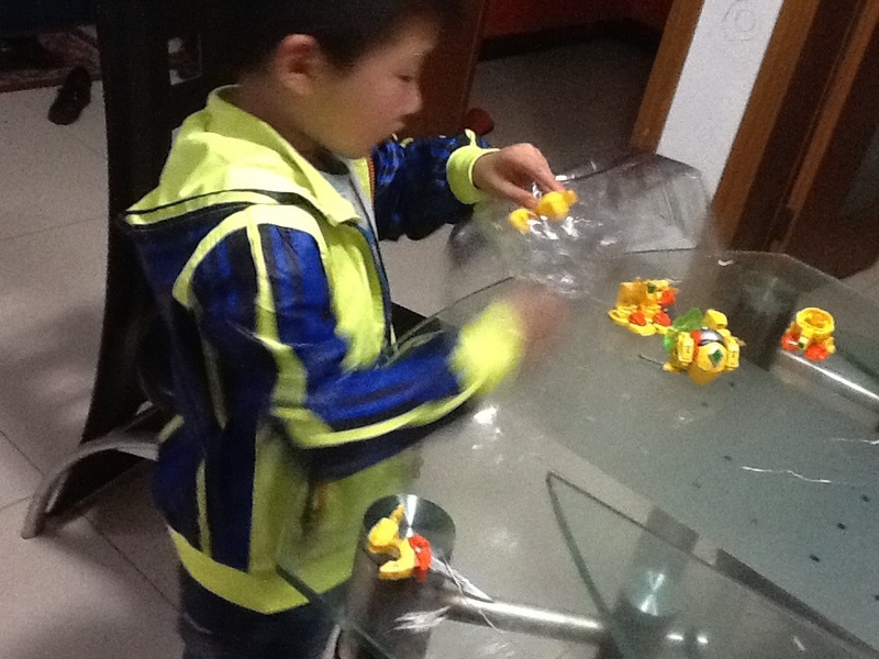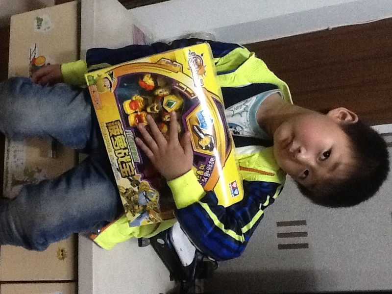 第一个星期,我忘记了在淘宝上买菠萝战宝,白天学校事情又多,晚上回到家做做家务,陪陪点点看看书,做做手工什么的,很快就睡觉了,然后拖了一个星期都没有买。点点每天晚上回到家就问有没有他的包裹,没有拿到包裹点点就很失望,到了第二个星期,我就在手机上给点点买了菠萝战宝了,速度很快,第二天就送来了,点点拿到玩具就要玩起来。