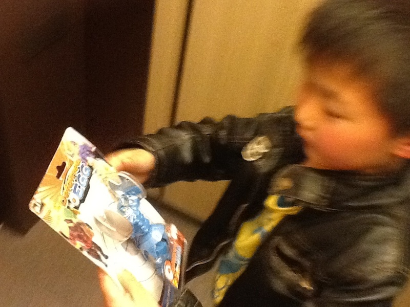 拿着自己换来的新玩具,点点很开心,回到家就和爸爸说,这是点点自己换来的玩具,打开奥特蛋,自己把蓝色的奥特曼拼装成一个鸡蛋的形状,然后再拆开来,又拼起来,玩得很开心。