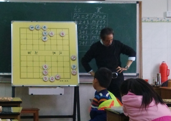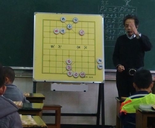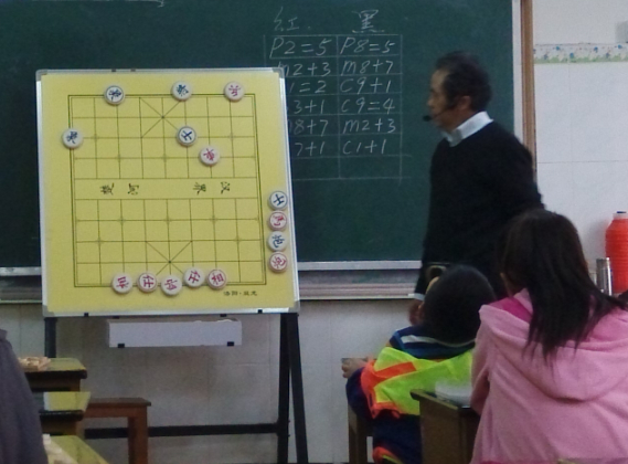 接下里就是老师念棋语小朋友下,让小朋友熟悉棋语和象棋之间的联系: