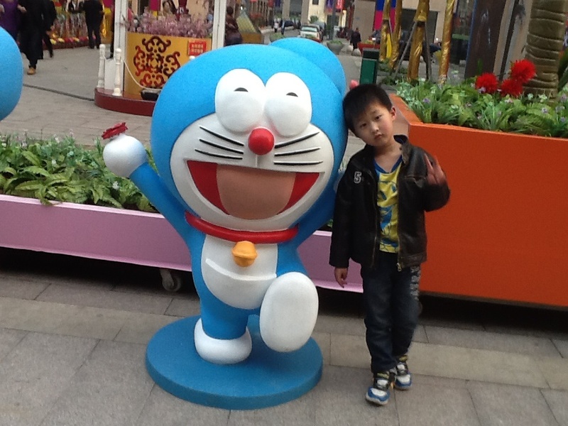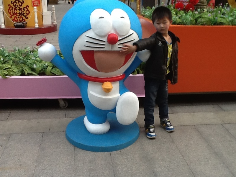 出来的时候,点点看到了机器猫哆啦A梦,看见很多小朋友都去和哆啦A梦拍照,点点也过去了,在花坛的四周都摆满了哆啦A梦,每一个手里都拿着不同的东西,点点说,我就是大雄,哆啦A梦会及时帮助他的。