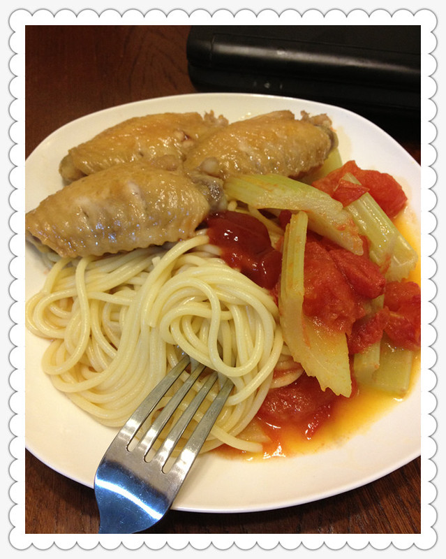 美好的星期六,我家小猪跟往常一样7点就醒来了(我好困呢!休息日不用上幼儿园干嘛不多睡点呢 ) 最近几个周末都外出没在家过,真心觉得这周需要在家好好休息才行,而且也好久没有下厨了。吃过早点知道我和小猪就去逛市场,估计都有一个月没有一起去买菜了。小猪说她喜欢吃鸡鸡翅膀。那好 吧我们就煮鸡翅意粉!一盒鸡翅5只,10元。现在有肉,有主食,还差蔬菜。一直以来意粉配番茄芹菜 也是小猪的挚爱,刚好今天卖农家菜的档主拿了很多新鲜货回来,小猪要自己挑番茄,4个小番茄一共 1.7元,不贵。家里还有一点昨天买的芹菜今天就不用买了。 回到家就开始准备。 ![]() 1. 先把鸡翅洗干净,用厨房纸把血水吸干净。 2. 放一点点盐,温柔地帮鸡翅做个按摩 3. 再放适量的生抽,糖,蒜头,还有混合香草(自从吃过一次这种香草,我就爱上了,很香,特别是烤鸡翅的是时候)再一次按摩鸡翅,让鸡翅把调味料均匀吸收,然后放置半小时。