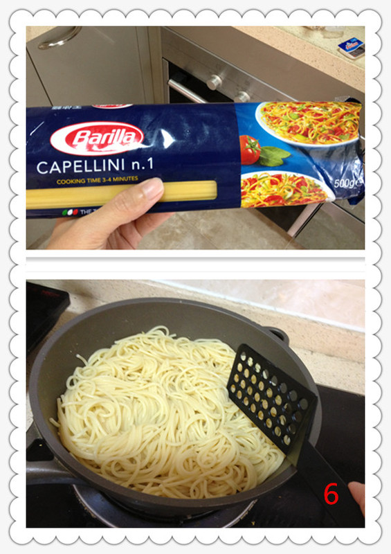 6. 接着用另外一个锅煮意粉,按照包装袋上写的要放点点盐,煮到意粉变软,适合自己口感的时候就可以关火,把意粉放到炒锅里面稍微炒干一点就可以盛出来。