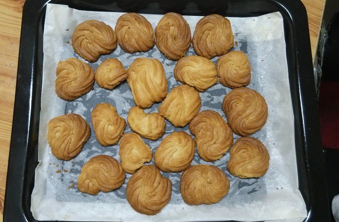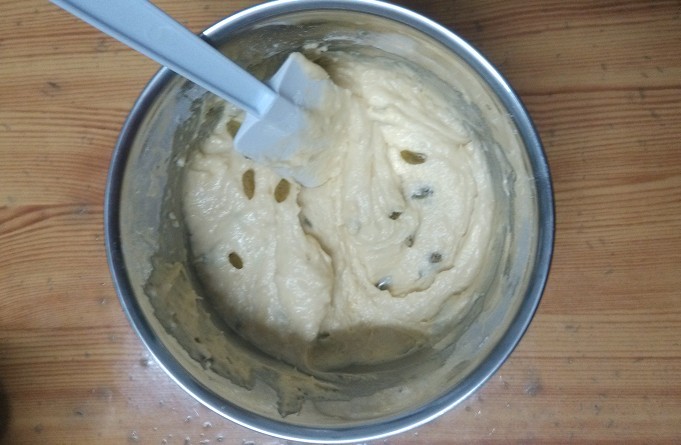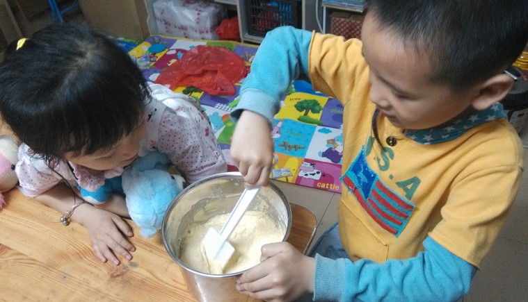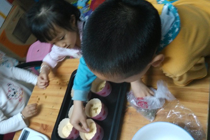 ![]() 前天,星期六,朋友的女儿小影在家里和大宝玩了一天,而之前做的两次烘焙都是大宝在幼儿园的时候做的,所以他一直很好奇这些饼干和面包妈妈是怎么做出来的,非常想亲眼看看。刚好下午也没什么事,让几个小朋友参与了做蛋糕的全过程。 ![]() 大宝一开始说要做面包,可是小影小朋友说想看阿姨做蛋糕,最后大宝同意了小影的意见,而且两个小家伙还要求做完蛋糕再做饼干,完全不管我弄不弄得过来呀。考虑到既要做蛋糕还要做小朋友们喜欢的曲奇,所以蛋糕就选了个貌似简单的玛芬蛋糕。之前在地带的论坛里也有看到宝妈写过玛芬蛋糕的做法,看起来比较简单,而我的烘焙食谱里也有,只不过食谱里用的是蔓越莓,我用葡萄干来代替。考虑到小朋友多,做的份量也要多一点,就按食谱的材料乘以2准备了。 ![]() 低筋面粉: 200g 泡打粉: 8g 盐: 4g 糖: 60g 黄油: 100g 牛奶: 100g 鸡蛋: 2个 烘烤条件: 烤箱中层180度烤15分钟 1. 把低筋面粉和泡打粉过筛后,再加入盐和糖,搅拌均匀。 ![]() 2. 黄油切成小丁软化后倒入,用手把黄油丁和面粉用手搓均匀,再倒入牛奶 3. 再打入鸡蛋(其他材料都是双份,唯独鸡蛋忘记是双份了,本来应该是放2个的,结果我只放了1个,也不知道是不是鸡蛋的原因,感觉做出来的面包比较散散的) ![]() 4. 搅拌均匀 大宝看自己插不上手,非常想试试,最后搅拌的工作就交给了他,小影在旁边看了也想动动手,然后两个小家伙就你搅一下,我搅一下,在那里搅来搅去。 ![]() 5. 搅得差不多了,再适量放点葡萄干,增加蛋糕的口感。 ![]() 6.把保鲜袋套碗里,再把搅拌好的面糊倒入保鲜袋,然后系紧袋子,在一个角剪个口子,将面糊倒入纸杯,记得只能倒8分满,因为烤了以后会膨胀。 ![]() 7.在蛋糕表面撒几粒葡萄干作为表面装饰,这个工作也交给了几个小家伙。 ![]() 装饰好后的玛芬蛋糕,看起来还像那么回事吧。 ![]() 放入烤箱中层,食谱上的烘烤条件是180度烤15分钟,而我家们的烤箱按这个条件似乎没有烤熟,我又多烤了几分钟。 ![]() 新鲜的葡萄干玛芬蛋糕出炉了。 ![]() 两个小家伙边玩小熊边吃蛋糕还边看电视。 ![]() ![]() 接下来,应小家伙们的要求,又做了一些曲奇饼干,有了第一次的经验,第二次做似乎顺手很多,速度也加快了很多。 ![]() ![]() 今天做的饼干和蛋糕相比,孩子们似乎更喜欢吃饼干,看来第一次做的玛芬蛋糕味道还不是很好,有待改进。也不知道是不是因为少放了一个鸡蛋的原因,有待下次再研究了。 本作品未经作者许可不得转载,转载请征求作者意见。擅自转载使用,将保留追究其法律责任的权利! 个性签名