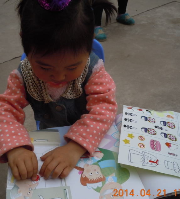 盼盼对贴图特别感兴趣,得知这本书上有贴图,盼盼就迫不及待地想要贴这个。