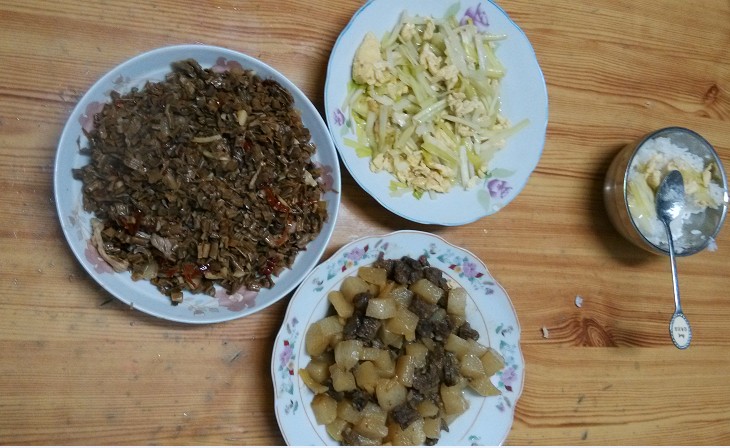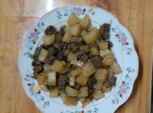 ![]() 虽然我也知道牛肉其实是有营养的菜,只是在这边,我们还是比较少买牛肉吃,总感觉这里的牛肉不好吃,而且充了很多水,一煮就会出很多水,和家里的黄牛肉比起来口感差太多,而大宝对牛肉也一直兴趣缺缺,炒过好几次牛肉,他看都不看一眼,有一次我故意说是猪肉让他吃,结果到了嘴巴里都给吐出来了。所以后来我就更少买牛肉了,这次看到大宝这么喜欢吃,看来他不是不喜欢吃牛肉,而是不喜欢吃炒牛肉吧。 ![]() 所以昨天我就特意去买了半斤牛腩,然后问了朋友这道菜的做法,就回家照着做了。因为是做给孩子吃,所以方法相对来说比较简单。买的牛腩看起来和牛肉差不多,估计用来炒也可以吧。我本人是更喜欢吃炒牛肉的。 ![]() 因为炖牛腩的时间要长一点,所以下午四点我就开始弄了,牛腩切大块一点,再切点姜丝。 ![]() 把牛肉和生姜下油锅炒一会儿,然后小火炖上20来分钟。 ![]() 因为牛腩比萝卜要炖的时间更长一点,所以等牛腩炖了20来分钟,再放切成颗粒的白萝卜放进去,再适量加点水,等水开以后开小火慢炖。因为这是给孩子吃的,所以就不放其他调料了。 如果是我本人吃的话,还会适量放点八角和桂皮、辣椒一起炖,这样吃起来更香。 ![]() 炖了差不多一个多小时,一定要把牛腩炖烂才好,再放入盐、鸡精等调料,然后就可以出锅了。大宝也很给力,昨天晚上几乎把整盘里的牛肉都挑着吃光了,只是萝卜一个都不吃呢,而我只有吃萝卜的份了。 ![]() 昨天除了炖牛腩外,还炒了一个韭黄炒鸭蛋,鸭蛋也是周末从朋友家拿回来的,是朋友的爸爸从老家带来的,纯天然自家养的,相当地好吃。 ![]() 这个是炒小笋干,爸爸去年在山上摘的小笋晒成的笋干,家里还有一些,放了辣椒,是我和宝爸的下饭菜,我们俩都爱吃,不过两宝是看都不看的。 ![]() 来张全家福,现在炒菜都得这么搭配,得选一个两宝爱吃的菜,还要我们大人吃的放点辣椒的菜,每天为吃什么菜都感到头疼呀。
