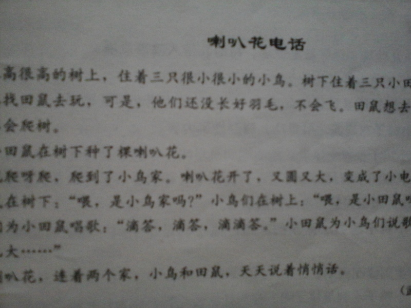 ![]() 阅读时间:4月24日 阅读人员:妈妈和宇秀 阅读绘本:《喇叭花电话》 绘本特色:感受故事的趣味性 适读年龄:2+ 阅读心得: 树上住着三只很小很小的小鸟,树下哦住着三只小田鼠。小鸟小找田鼠玩,可是不会飞,田鼠想找小鸟玩,可是不会爬树。小田鼠种下喇叭花,喇叭花凯了变成了小电话。滴答答,一棵喇叭花,连着两个家,小鸟和田鼠,天天说着悄悄话。 用散文诗般的语言、回环重复歌唱般的节奏、天真浪漫的幻想情节,构造出了一个有二米诗意的童话世界,非常适合幼儿阅读。整个故事的节奏分成两段。前半部分是完全重复的,重重叠叠的语言,不仅有一种歌曲般的运至,也很好地表达了情绪,把小鸟和小田鼠的急切心情衬托出来。后半部分的语言简洁明了,表达了小鸟和田鼠的欢愉心情。对话的形式也把打电话的情景生动地表现出来。 在生活游戏中,引导孩子尝试比较事物,结合日常生活中使用的物品、玩具等,引导孩子学会使用又……又……和很……很……描述事物特征。可以和孩子一起种牵牛花,观察植物的生长和形态,和孩子一起搜集有关爬藤植物的图片或是资料。还可以和孩子一起看图书,动画片等,了解常见的小动物的本领。