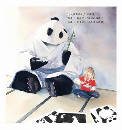 琼·穆特1960年生于美国俄亥俄州的辛辛那提市,母亲是艺术教师,18岁时就在美国威尔明顿学院举办了自己的首场个人画展。后在日本出版商的资助下赴日学习石雕与书道,从此对东方文化产生浓厚的兴趣,还曾学习过太极拳、水墨画和茶道。他的经历在这本与众不同的《禅的故事》的到了充分的展示。禅是佛教"禅那"的简称,是东方文化的哲学核心之一。如何对美国的孩子讲述呢?他选择了具有中国符号的大熊猫,为孩子们讲述了塞翁失马等三个有趣的小故事,用讲故事的方式传达出来自禅学的生活智慧,让孩子学会更从容地生活,懂得慷慨给予、遇事冷静、宽以待人的道理。这些故事是书的暗线,作者采取了黑白水墨画的方式,透露出古朴与智慧。而书的明线是静水在现实生活中的困难与迷惑,琼·穆特用清透灵润的水彩画来讲诉,孩子的可爱与大熊猫的睿智在优美的绘画中丝丝缕缕、润物无声。整本书都闪烁着东方文化的迷人神韵。