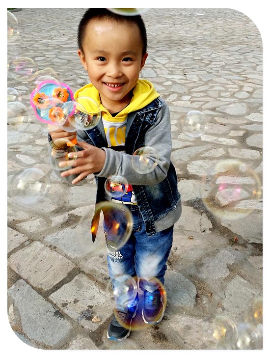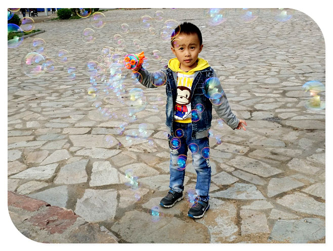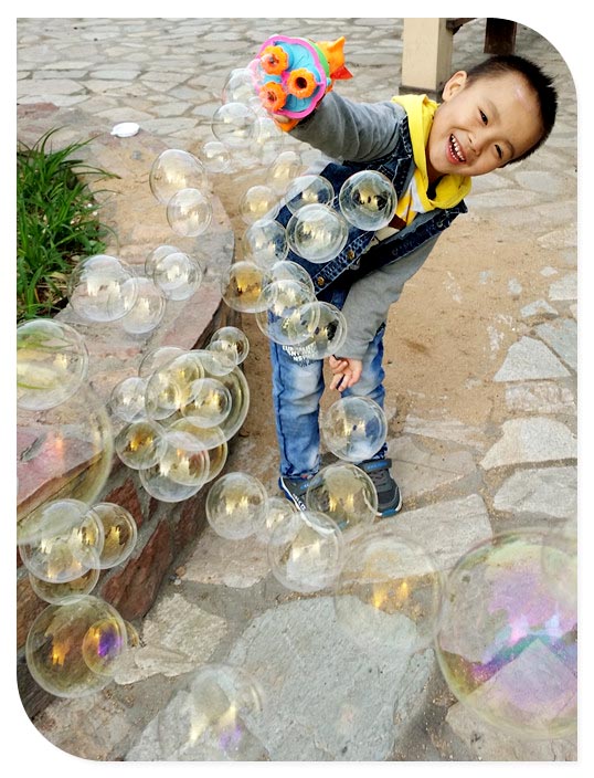 小家伙感慨道:“哇塞,好多泡泡啊”