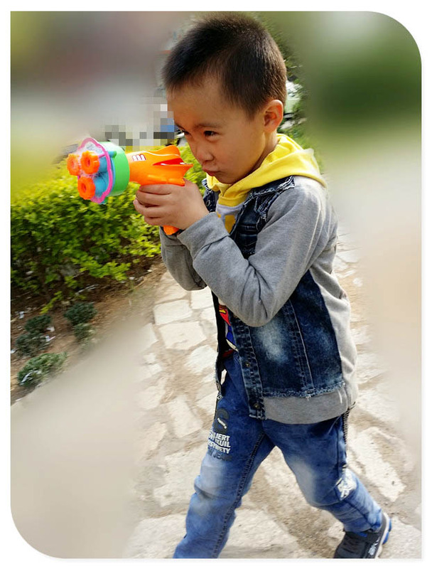 好漂亮的泡泡枪啊,我都没怎么给子凯买过的,哈哈,我怕他弄得家里都是泡泡