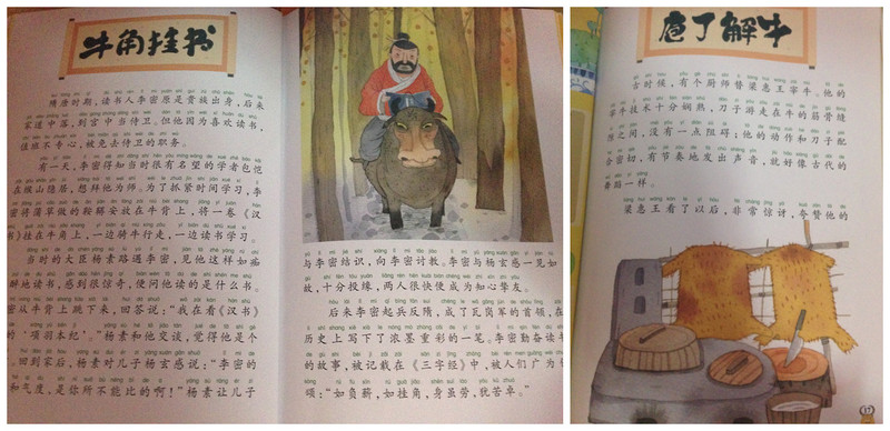 ![]() 阅读时间: 5.2 阅读成员: 妈妈 宝贝 适合年龄: 4+ 阅读心得: 今天我们再来讲两个关于牛的成语故事,先来说说第一个故事,说真的我都是第一次听到,真是学识浅薄啊。每天陪儿子读书也让我增长不少知识呢。看来坚持读书收益的不仅是孩子。 “牛角挂书”从字面上来看,可以理解为把书挂在牛角上,那么真正的含义还是比喻读书勤奋到了边骑着牛边看着书。这是是讲隋唐时期的读书人李密原来是贵族出身,后来家中败落当了一个侍卫,就是因为喜欢读书,值班的时候不专心,侍卫也做不成了。有一天李密想拜有名望的学者包恺为师,为了抓紧时间学习,李密就将一卷《汉书》挂在牛角上,一边骑牛行走,一边读书学习。路上遇到 大臣杨素,见到他这样的读书倍感惊奇,通过交谈认为李密是一个奇才,就让自己的儿子和李密认识,从此两人成了挚友,后来李密起兵反隋,成了首领,同时他勤奋读书的故事也被记载在《三字经》中被人们广为传颂。 “庖丁解牛”中的庖丁是指厨师的意思,解牛指分解牛。这个成语比喻经过反复的实践,掌握了事物的客观规律,做事得心应手,运用自如。古时候有一个厨师为梁慧往宰牛,他的宰牛技术时分的娴熟,刀子游走在牛的筋骨缝隙间,动作和刀子配合密切,就好像舞蹈一般。梁惠王看了之后非常的惊讶,,厨师将自己是如何宰牛讲给了梁惠王听,原来他也不行,经过三年的练习之后,宰牛的时候都不用眼睛看,而是用心神去感觉,一把刀可以用十九年之久,而其他的厨师一年一把,可见功夫了不得啊。两个成语故事分别可以学习到不同的道理,一个学习勤奋的精神,一个明白多练习就可以做到运用自如的地步,学习也是同样的道理。 本作品未经作者许可不得转载,转载请征求作者意见。擅自转载使用,将保留追究其法律责任的权利! 个性签名