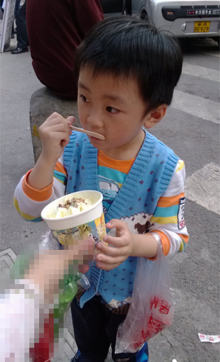 ![]() 昨天的天气预报报的是31度,可早上才起来时还是有点凉飕飕的感觉,还是给罐罐穿多了一件外套,而且还不是很薄的那种外套,可刚下楼就看见罐罐在流鼻涕了,看来还是有点冷,因为罐罐有个很特别的症状,只要他赶紧到了,就会流鼻涕的,这可是这几年对他的生活习惯的了解得出来的结论。 ![]() 但想着在幼儿园会不停的活动,也就没有回家换衣服了,只是告诉他书包里面带有件背心,如果还是感觉到冷了就加上,但如果下午热了,也可以把外套脱了,换成背心也可以的。 ![]() 直到下午2点过,太阳才开始露出火辣辣的热力,那时才感觉到热了,可直到下午4点50去接罐罐时,他都还是穿着外套的,只是敞开着而已,都没有热得很夸张的那种,只是因为背着书包,背后就特别热了,我才赶紧给他换成背心。 ![]() 因为我要去快递点取东西,就带着罐罐一起去了,途径雪糕店时,罐罐还故意跑到那里说‘妈妈,这个是什么?’我直接就说,你明知道是什么,还故意这样问,是不是想吃呀,罐罐结果却这样回答‘妈妈,今天没太阳,就不吃雪糕’。天,明明明晃晃的大太阳高高挂,还说没太阳,好,我就看你能坚持多久。 ![]() 结果走到车站那里去取了快递,顺便就在车站等老公回来了,我就去买了个中杯的雪糕,还没拿在手上,罐罐就已经是两眼放光,开始笑得眼睛得合不拢了,直接就抢过了开吃了。 ![]() 吃到第一口时还感觉很冰似的 ![]() 后面可就很适应了 ![]() 继续埋头苦干的挖呀挖。。。。 ![]() 真的是太好吃了,帅哥的形象也不要了,不管了,还是吃重要些,你懂的 ![]() 这是已经吃了大半,开始在摆造型了,说是老师教了他们跳舞的,叫他跳给我看,他又记不住了,呵呵 手上还提着酸奶呢,而且还是已经喝了一瓶酸奶了,真是吃货 ![]() 为了不让罐罐吃太多,我也只好和他抢着吃,我吃大口,他吃小口,而且最后一口被我成功抢吃到,可罐罐竟然不依不饶的叫我吐出来,可怜的我,吃点雪糕容易吗?还是我出钱,却不让我吃舒服,某些人不是说得信誓旦旦的,今天没太阳,不吃雪糕的吗?哎,看来有吃的,特别是对于吃货的话是坚决不能相信呀。 本作品未经作者许可不得转载,转载请征求作者意见。擅自转载使用,将保留追究其法律责任的权利!