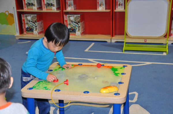 好玩的太多了,小帐篷、小木马、适合小宝宝玩的玩具也不放过,必须要体验一下。这两个大圆盘在一间屋子里,不知是什么原理,感应?一个是花朵,不让花朵进自己的“家”,每进去一朵花就减一分,分多者胜;另一个是让小羊回家,双手不停地晃动,让小羊进自己的“家”,进家数量多者胜,有时小羊明明奔我家来了,可是走了一半突然就拐弯去别人家了。