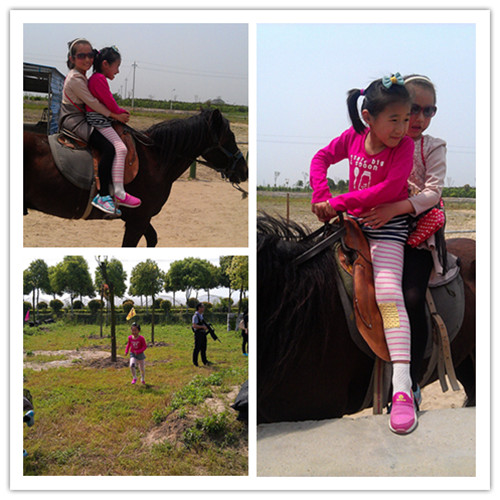 孩子们说喜欢骑马,大伙赶紧奔跑马场,假期的天气很给力,中午竟然当然太阳当空照,热得实在吃不消,可孩子的精力充沛,个个等着去骑马,因为人很多,还要排队,孩子们兴奋地挑选自己喜欢的马儿,可好看的都比较抢手,最后选了一匹温顺的黑马,得儿驾了。