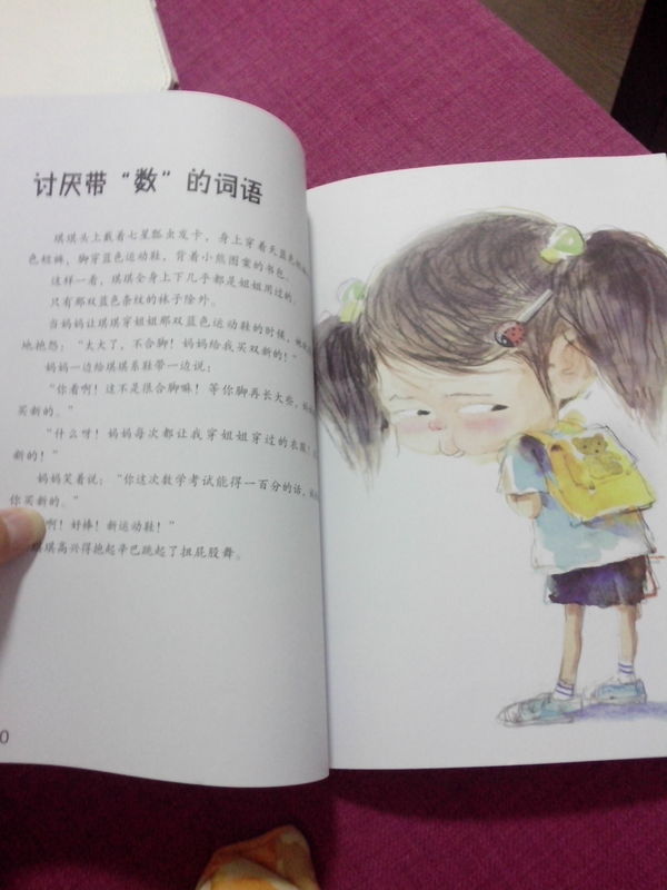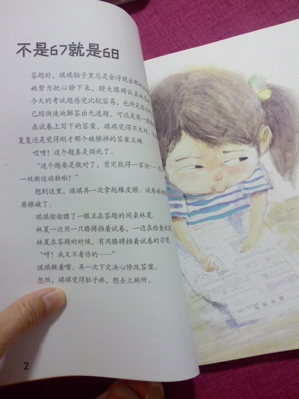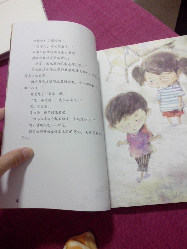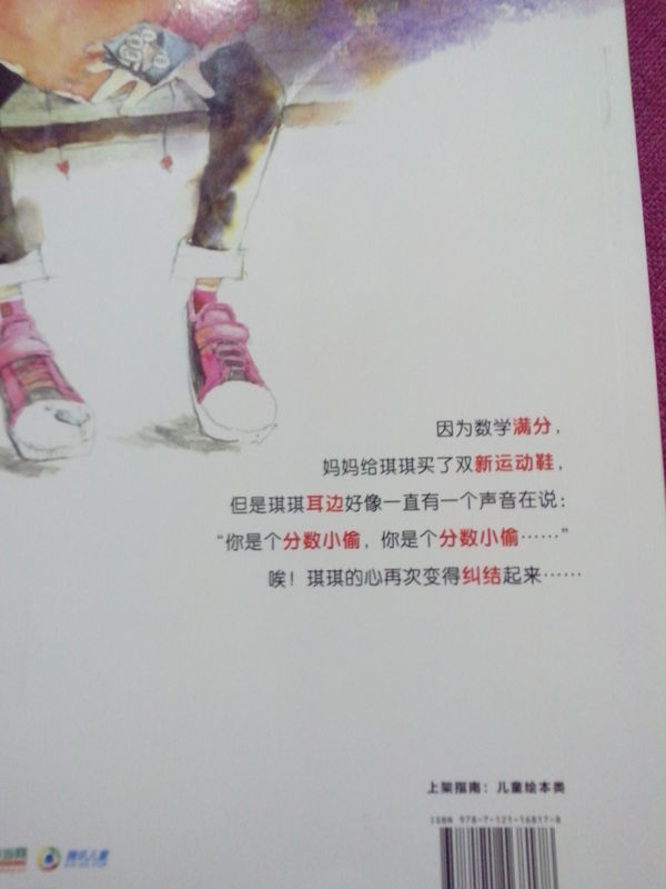 先简单介绍下这套书,这是一个系列的书-我的小秘密,其中包括《老师不知道的秘密》、《妈妈不知道的秘密》、《爸爸不知道的秘密》和《朋友不知道的秘密》,书的作者是赵星子,绘画是金俊英,都是韩国人,由汪洁翻译并由电子工作出版社出版,应该说是对孩子的成长非常有用的一套儿童读书。 我得到的《老师不知道的秘密》这本试读,书的质量很好,文字浅显易懂,绘画也很卡通可爱,比较适合孩子阅读。全书约有60页,应该不算少,但果拿到书后却能一口气读完了,这一点是我没有想到的,因为整本书文字不少,而且页数不少,我本来是想她分几次看完或者要求我给读的,没想到她全程一个人读了下来,读完后还给我讲了故事的大概意思,因为我没有事先阅读,所以不知道她讲的意思是否正确。她讲完后,我又读了一遍,意在检验一下孩子是否真的读懂了这本书,令我欣喜的是,孩子理解的意思是准确的,那么阅读这本书也算是成功的。 这本书的大体内容是小学生琪琪因为从小一直穿姐姐穿过的衣服、鞋子,所以对旧的事物产生的厌烦,琪琪跑步非常厉害,经常在学校跑第一名,但就是因为穿了姐姐穿过的鞋子不跟脚,所以在运动会上没有得第一,后来妈妈为了鼓励她,向她承诺如果她这次数学考试得100分就给琪琪买一双新的运动鞋,为了这个目标,琪琪一直在努力,但在数学考试中,有一道题她拿不准自己的答案是否正确,经过多方验证后,自己答错了,后来琪琪进了老师办公室擅自修改了卷子,琪琪如愿以偿得到了自己梦寐以求的运动鞋,妈妈也因为琪琪得了100分而自豪骄傲到处炫耀,但自此以后琪琪再也快乐不起来了,因为她知道自己的这个100分是怎么来的,就连跑步的时候想到这儿也浑身没劲,最后甚至害怕听到数字二字,因为心事重重,琪琪病了,老师虽然知道琪琪跑步没得第一,但也奖励了她一包棒棒糖,在老师的关怀下,琪琪终于鼓起勇气跟老师说了自己的事情,其实老师早就知道这件事,但琪琪遇到了一位好老师,没有当场拆穿她而是等她自己主动承认错误并改正错误。 这本书的一个核心理念是告诫我们作家长的平时不要擅自向孩子承诺什么事情,有时候孩子为了你的这个承诺、为了孩子自身的一种欲望往往是控制不了自己,从而做了错事,家长的承诺有时候是对孩子一种鼓励,但有时候也会起到相反的作用。 读完这本书后,我想有机会我会把这一系列的另三本书也买回来,和果一起阅读,更深地了解一下孩子内心深处的小秘密! 有图有真相! ![]() ![]() ![]() ![]() ![]() ![]() ![]() ![]() ![]() ![]() ![]()