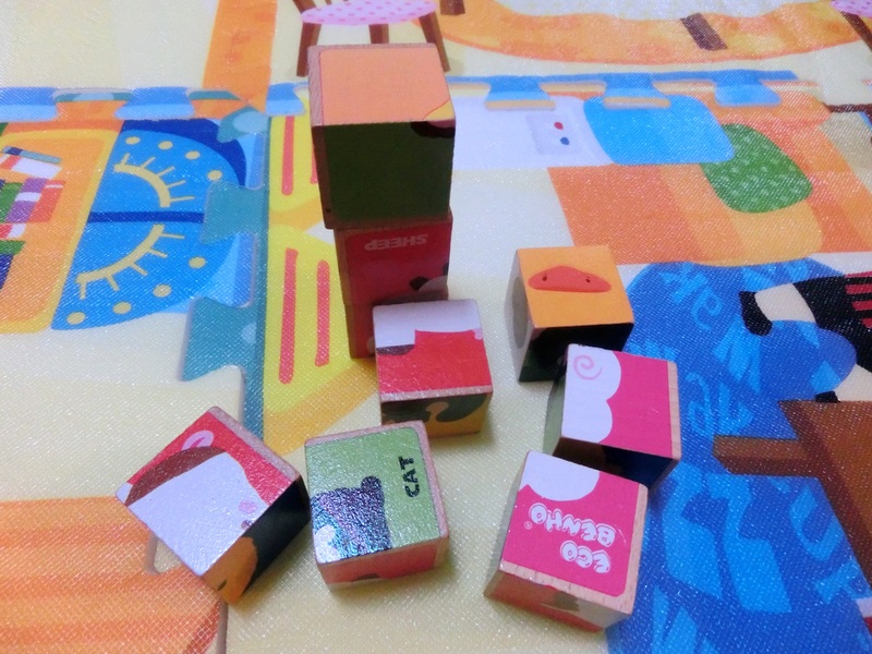 今天,问添翼玩具箱在哪里?添翼就从床下找出了自己的玩具箱。不过,玩具箱里的玩具都是3个月孩子玩的,添翼已经不感兴趣了。唯有玩具箱里的积木算是适龄的玩具。 这套积木是淘宝免费送的。 我带着添翼到爬爬垫上玩积木。今天,我搭了3块积木。结果,我对添翼说,垒高高。没想到,添翼拿起一块积木来,在我没有触碰积木的情况下,在3块垒好的积木上面成功垒上了第四块! 虽然不知道是不是凑巧,但我还是很惊讶!毕竟,添翼只是个12个多月的孩子而已,能搭上一块积木,已经感觉很不可思议了。