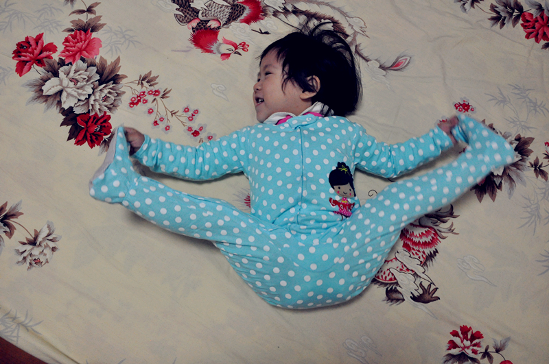 这就是为了豆浆的睡衣问题,我和长辈经常争论的话题,非常无奈,因为豆浆睡觉确实经常踢被子,一夜四五次是很正常的,但是我和先生又睡得比较死,经常是半夜醒来看见豆浆整床被子都在身体下,身体凉凉的。于是公婆苛责我们,我们也自知理亏。