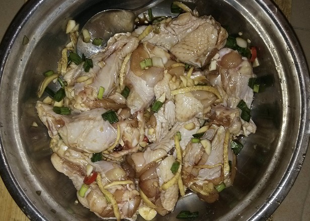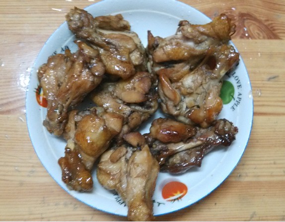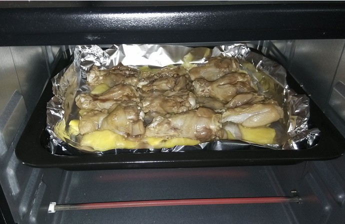 1.先把解冻好的鸡腿切开晾干一下水分。 ![]() 2. 切好料准备腌鸡腿,有葱、姜、蒜、生抽、再放了一点点辣椒,因为宝贝们要吃所以没有多放。 ![]() 3. 放入鸡腿,再放入适量的盐和味精,滴几滴料酒,还洒了一点五香粉,让它腌上几个小时入味。 ![]() 4. 下午带宝上了涂鸦课回来就开始烤了,把腌好的鸡腿先刷上一层蜂蜜,然后在烤盘里垫上一张锡纸,再把刷了蜂蜜的鸡腿摆进去,家里刚好买了菠萝,就在边边上摆了几片菠萝调味,让鸡腿更香,这是自创的啊,食谱上没这么说。在烤的过程当中屋里都是香味,大宝一直在问什么时候能烤好,小家伙迫不急待地想吃呢。 ![]() 5. 200度烤了25分钟,中途取出来一次刷了一层蜂蜜,最后出炉的成品就是这样的了。 ![]() 一共烤了9个,大人们一人吃了一个,两宝贝一人吃了2个,真是人小吃得多呢。大家的评价是味道还不错,肉比较嫩,因为刷了蜂蜜,还带点点甜味,挺好吃。有了第一次,以后想吃就简单了。