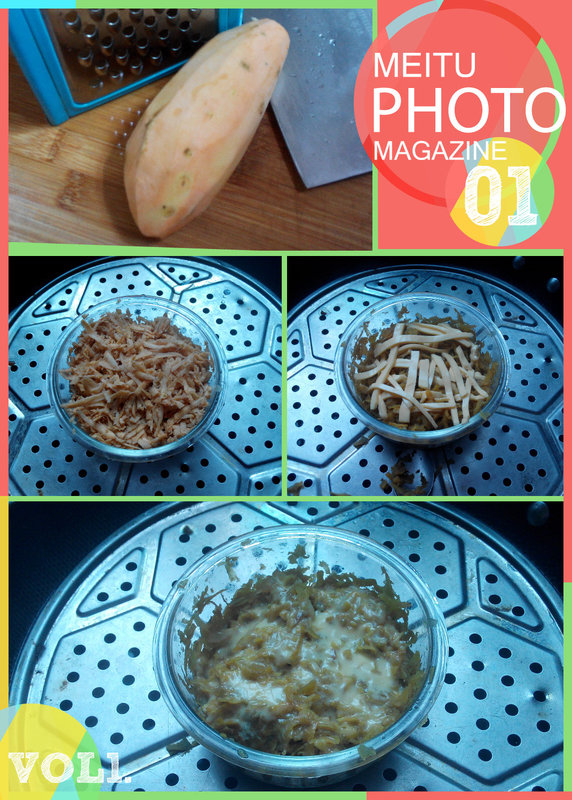 我记得外面吃的都是番薯泥焗芝士片的。不过我嫌弄番薯泥麻烦,又不想把料理机拿出来用,就想着把番薯弄成丝再来蒸熟,这样要弄成番薯泥也差不多了吧。于是我就做一次尝试。把番薯刨丝后,拿一个碗装住,再隔水蒸熟。差不多时,再把芝士片切丝放在上面蒸一会。吃的时候再搅拌就行。 ![]() 这就是我做这个的过程。不过,我失败了,我觉得不好吃。刨丝来蒸一点都不好吃,还不如切块蒸然后压成泥来。而且刨成丝后,显得挺多的,我用这个保鲜碗来装也失败了,要用盘子好一点,用碗装显得比较难熟。 这是一个失败的经验,基本我的试验精神,所以我还是发上来跟大家分享了。希望我下一次的成功呀!不过我再分享一次,我上一次的试验,不同的做法,虽然没有说很成功,但却比今天的好吃多了,看看吧! ![]() 这个是番薯切块,然后用黄油煎一下番薯,然后加水焖煮。煮熟后,再加上芝士片继续煮一会,然后收汁装盘。这一次做得很香浓,只是用煮的,显得比较难熟,我想用蒸的比较好吧。其实有烤箱的话,用番薯泥来焗那多好吃呀! 总之,试验还没有达到我满意的程度,还需努力呀!