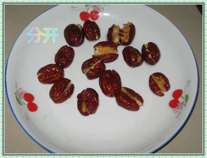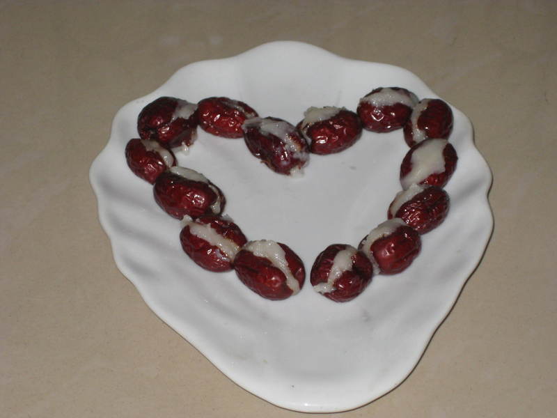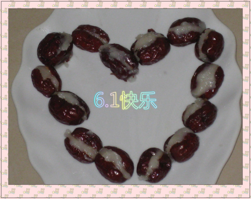 ![]() 首先祝所有的孩子们节日快乐! 今天我给孩子准备一道美食,送给孩子作为儿童节礼物。因为今天休班,所以提前做了。 美食的名字——甜甜心,是妈妈有一颗爱孩子的软软的、甜甜的心 ![]() 准备好大枣,洗干净,要选择大一些的大枣子啊,这样才好,肉多,而且去核之后空间大,容易放入糯米条。 ![]() 去掉枣核,要用小刀小心取,注意您的手啊 ![]() 准备糯米粉,糯米粉很好吃,我试过别的面粉,都不好的。 ![]() 加水,和成糯米条,不要太软的,太软大火一蒸就会化掉 ![]() 放入枣中,大火蒸15分钟 ![]() 看OK了,糯米条凝固 ![]() 做成心形的摆盘 ![]() 祝福宝宝,儿童节快乐! 亲,您也可以给宝宝做这样一道甜品,注意不要放糖,枣子已经有些甜味了,不要在另外加糖了。 希望宝宝们过得开心,吃的快乐! 甜甜蜜蜜的甜甜心,送给宝宝地带的所有小朋友。因为隔得太远,不能把这个甜品送到每个天使的手中,只有借宝宝地带,告诉所有的天使妈妈们这道甜品的做法,希望宝宝们可以吃到。呵呵,辛苦妈妈们了! 孩子们,节日快乐! 本作品未经作者许可不得转载,转载请征求作者意见。擅自转载使用,将保留追究其法律责任的权利! 个性签名