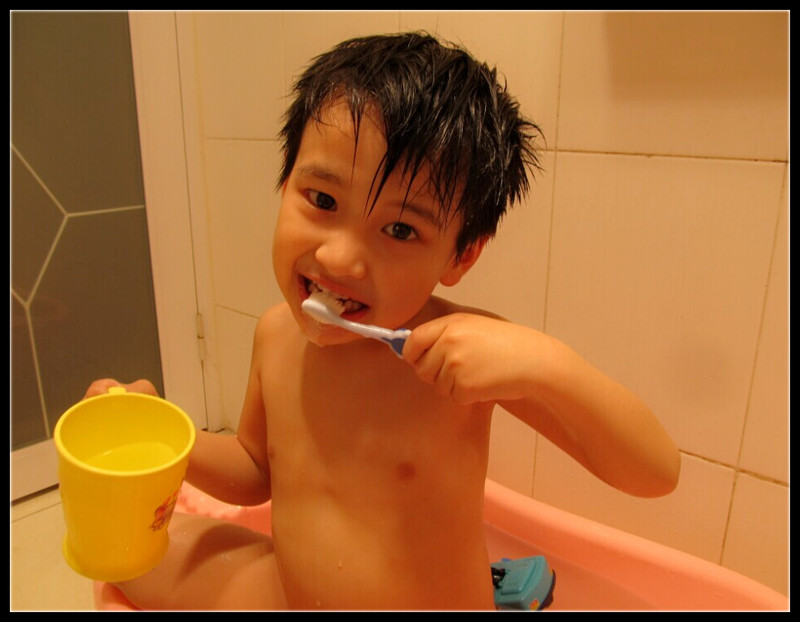 Aric在浴盆了玩了很久,挖掘机、小飞机、小汽车在水里游着,直到水温慢慢变凉了,Aric还是舍不得出来。我说再不出来就要感冒了哦,感冒就得打针呢,Aric才恋恋不舍的爬出来。我要帮他洗澡,Aric摆手说不用,说自己是个小男子汉了,不需要妈妈的帮助。说完就拿起牙膏牙刷,自己开始刷牙,然后到淋浴下,我帮他调好了水温,Aric拿着偌大个淋浴喷头对着自己冲了起来。我好奇的看着他,他洗的特别仔细,包括自己的隐私部位、包括自己的小屁屁,包括自己的胳肢窝等等。