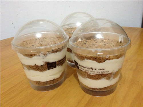![]() 3、在杯子中加入一层饼干屑,压实;
