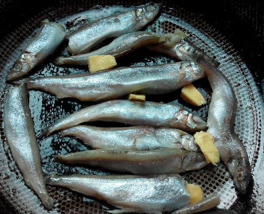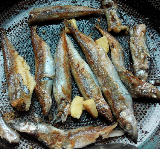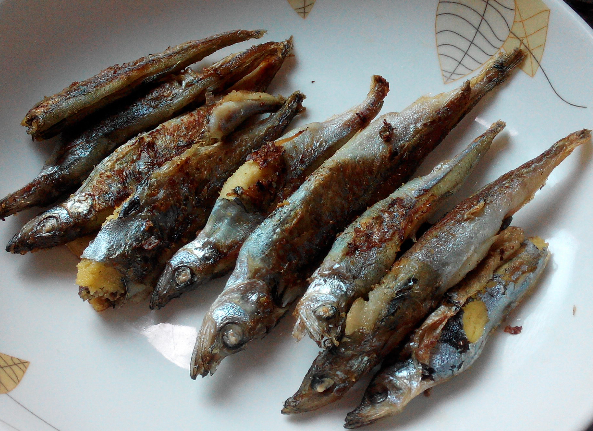 昨天上午老公出去一上午了,他是去做书架了。看他那么辛苦,但我还是赖着在上网,不想动手做饭。甚至还一度想要吃方便面解决午餐。后来想想还是不要了,弄点菜慰劳一下我们自己吧。至于饭什么的,就让老公在楼下饭堂打些饭菜回来就好了。冰箱里也没什么菜了,我忽然想起了冰箱里面的多春鱼,我们买来已经差不多一个月了,一直放在冰箱,一直都觉得热气,加上孩子生病,总是没机会弄呢。何不趁着这次只有我们两个在家,赶紧弄来吃了。