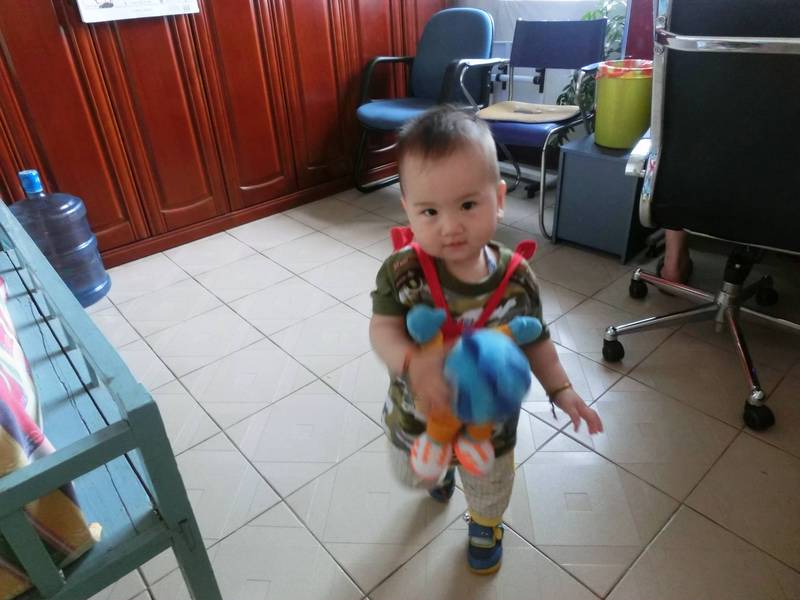 今天在楼下,4楼小素大妈逗他玩,拍了拍屁股,结果添翼“卟”一下放了个屁。于是大家都说放屁的事情。添翼一听,嘴里也开始“卟”开始“放起屁”来。