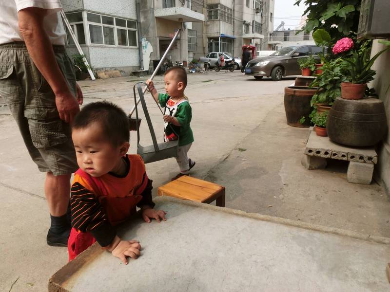 这几天可可来了,添翼上午下去和可可玩。正好乐乐也在,于是3个小宝宝就放在一起玩了起来。 可可最近也会走路了,她最近特别喜欢趴在门口。今天,从早上7点整,我下楼上班的时候就看到她又趴在铁门上。