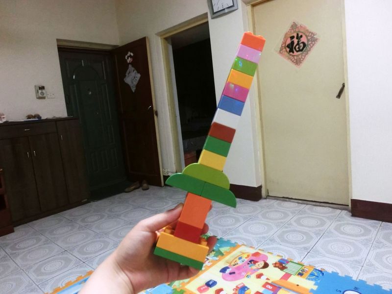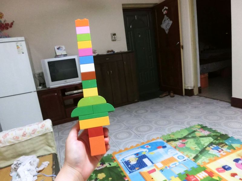 晚上和添翼玩积木,我心血来潮随意拼了一把宝剑。结果得宝的积木不结实,一拿起来晃一晃,宝剑就断了。不过也不影响玩耍。 我举着宝剑对添翼说:哇!宝剑! 结果话音刚落,宝剑就断了。 添翼看了以后哈哈笑个不停。 我又对他说,哇!宝剑! 添翼拿过宝剑,宝剑在地上被散得七零八落~~ 而添翼则特别开心~~发展到后来,变成了,只要我一说:哇~宝剑~他就笑得前俯后仰~~~