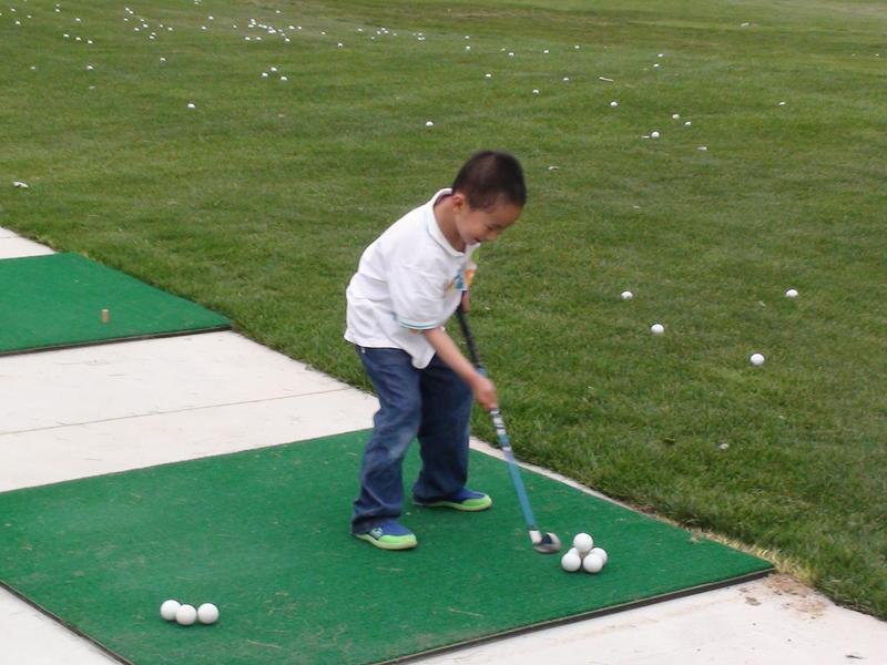 这次端午三天小长假,牛牛的活动日程安排得很满,第一天到高尔夫训练场去体验高尔夫运动,第二天和第三天和几个好朋友一起去怀柔野外露营。下面分别对这几天活动做个总结回顾。 在端午小长假的第一天,我们一家三口去来广营参加体验高尔夫活动,由于路不是很熟,绕了一会儿才到达目的地,不过一看到绿油油的高尔夫训练场,牛牛就很高兴。经过教练的简单指导后,牛牛就开始练习,虽然手法还不是很熟练,经常一挥杆,打空了,不过还是很卖力气地练了一个多小时,手都起泡了,还没有玩够。中午在外面吃过午饭,下午又开车回来继续玩,一直玩到下午6点半才回家。在回家的路上还一直说,高尔夫球很有意思!以后还想来玩呢!看来这位小朋友对玩的积极性还真是不一般的高啊!