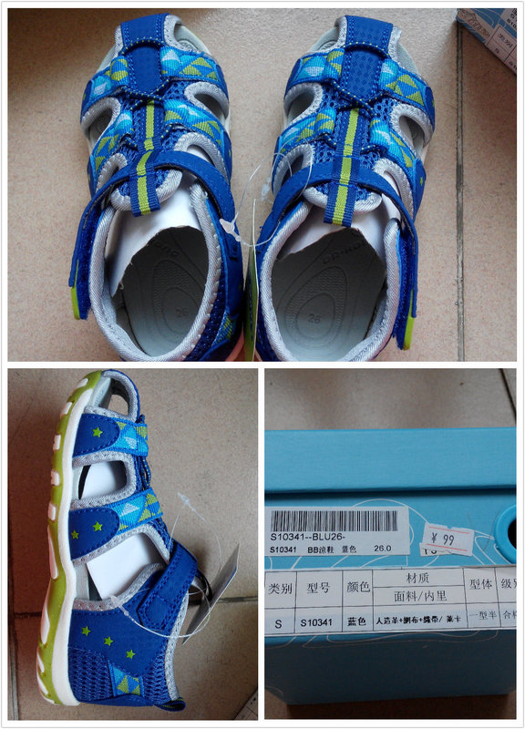 看到这鞋,颜色是男孩子的蓝色,很漂亮呢!前年买过这样的鞋给孩子,好喜欢,天天穿呢!这鞋的质量好,穿一季是没问题的。而且之前小羽自己挑的那双凉鞋他不怎么喜欢穿了,说跑不快。这下,他喜欢这双了,说这双才跑得快。或许他知道这鞋穿起来更舒服吧!品牌就是比较普通鞋好呀!