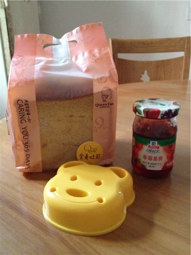 小熊面包材料:小熊模具、吐司面包、草莓果酱
