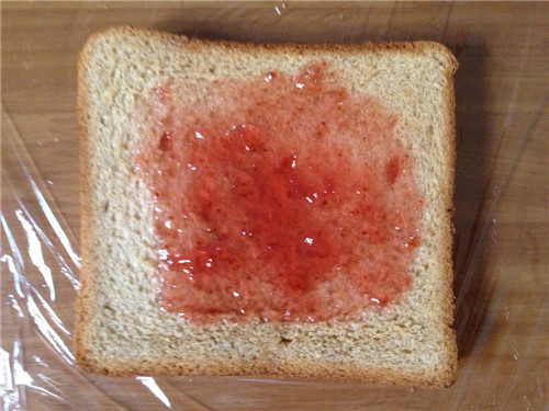 做法: 取吐司一片抹上草莓果酱(或者奶酪),再取一片对齐盖上。 用小熊模具压一压,去掉边角料。按紧模具,这样做出来的更好看些。