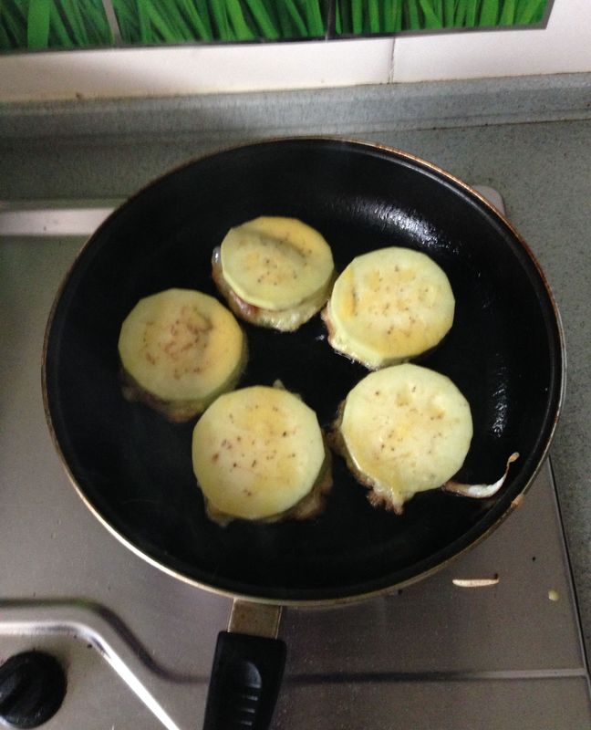 操练一遍后略有心得:整个过程并不复杂,程序也不多。对于新手来说,就是切的时候小心别切断了;塞肉馅的时候别贪心放得太多,否则不好熟;煎的时候耐心一点,我是总不放心,怕肉是生的。