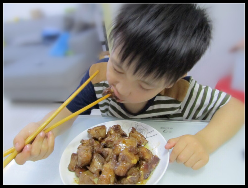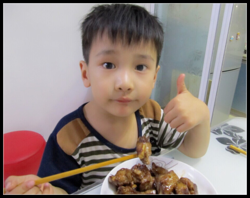 ![]() ![]() 真心觉得我这个记性需要整整了,天天忘事,就连最拿手的菜,也忘记怎么做了。昨天Aric说想吃排骨,我问为什么想吃排骨?Aric说幼儿园吃的排骨,但是每个小朋友只有一两块,根本不够吃的,所以现在想吃排骨了。听完以后,可把我心酸的不行,想着咱在家,可恨不得把最好的都给儿子吃,可是到了幼儿园,却只能当成稀奇的东西,舍不得吃的。因此决定今天给儿子做排骨,只是怎么做来着?我貌似给忘记了。 ![]() 冰箱里有提前买好的小排,拿出来化冻以后备用,看着酱油、醋,纠结了,做糖醋排骨是不是也放酱油啊?做红烧排骨貌似不如糖醋排骨好吃。最后决定试一试吧,不打电话问了,想当年咱也做过很多次的,怎么这也不会差多远吧。因此,我就拿出排骨放在锅里小炖了一下,去去血水,然后捞出来再次洗干净备用着。接着油锅加热,将排骨加入锅中翻炒,翻炒至金黄色后,加入一点纯净水,小咕嘟一下,因为我怕不熟啊。 ![]() 感觉差不多了,加入酱油再小炖一下,话说这貌似是红烧排骨的做法,可是当时我真是不记得到底是不是这样做了。稍微收收汁以后,加入白糖少许、醋少许,因为家里没有陈醋,只有白醋,所以只好加了白醋。最后根据味道,加入适量的盐和鸡精,出锅即可。看着颜色还是不错的,尝了点味道貌似也还可以,应该是这样的吧,反正都出锅了,甭管行不行的,也就这样了。 ![]() 叫了Aric过来尝一尝,Aric试试味道点点头,我继续去炒别的菜了,回头一看,小家伙已经站在桌前开始吃起来了,边吃边说“妈妈做的排骨真好吃啊!”我嘿嘿直笑。老公回来后,吃饭的时候问我,排骨炒熟了吗?我说肯定熟了啊,他问这是糖醋排骨还是红烧排骨?我问你说呢?老公说,看着像是糖醋排骨。我立马拍手,答对了,就是糖醋排骨。老公若有其事的点点头,原来真是糖醋排骨啊,可是为嘛加了酱油啊?额,这个还真不好说,嘻嘻,我回头再学,保证做正宗的糖醋排骨。 ![]() 排骨放在锅里小炖了一下,去去血水 ![]() 然后捞出来再次洗干净备用着。 ![]() Aric看着好玩,也想帮我炒炒排骨 ![]() 不知不觉间,加了酱油,加了水炖一炖,可是这是红烧排骨的做法啊、 ![]() 然后又加了醋和糖,糖醋排骨应该是这样做的吧? ![]() 看成品还是蛮不错的,颜色我比较喜欢,嘻嘻 ![]() ![]() Aric忍不住吃起来,边吃边夸奖妈妈做的排骨真好吃啊。 ![]() 最后小家伙给我点了个赞,可是老公却说,这貌似有点串味了,根本不是糖醋排骨啊。