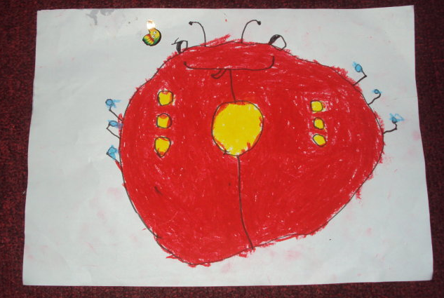 这是儿子从幼儿园里带回来的作业,是他画的七星瓢虫。虽然这只七星瓢虫不太圆,身上的点点画的也有点儿不规则,但是在我的眼里,这是儿子的作品就是最棒的作品哦! 儿子给我展示这幅作品的时候,还特意跟我说,他给这只七星瓢虫画上了调皮的舌头,我说在哪里呢?他就指给我看,就在大大的黄色的圆点的左上方,大家看到了没有?真的是调皮的儿子啊!总是想着创新呢!这幅作品也得到了老师的肯定,老师还给儿子奖励了一个大拇指呢! ![]() 本作品未经作者许可不得转载,转载请征求作者意见。擅自转载使用,将保留追究其法律责任的权利! 个性签名