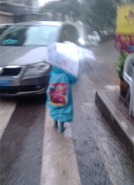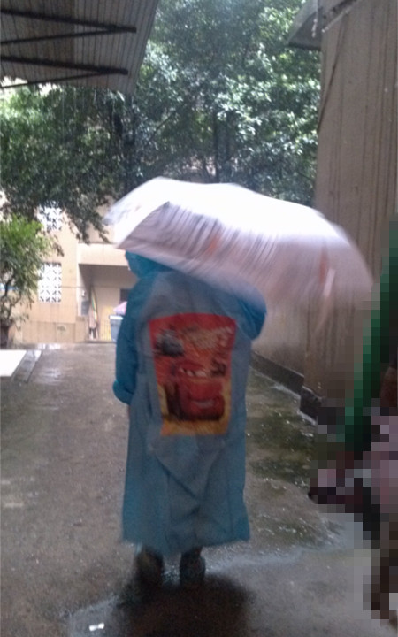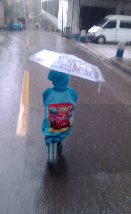 ![]() 我们是16号回来就开始在下雨,特别是20号那天的大暴雨,现在都还记忆犹新呀,可以说雨都是用盆子往下倒似的。 特别是早上罐罐上学时,我还特地给罐罐全副武装,雨衣,雨鞋,雨伞都穿上,结果到幼儿园时还是把裤脚打湿了。就短短的几分钟的路程,还不是很远呢。 ![]() 还是来看图片就知道雨有多大了。 刚下楼,赶紧把雨伞给罐罐打开,他好自己拿着,但下楼梯时是我一手牵着他走的,以免万一摔跤,滑倒了就麻烦了。当然,他的书包就由我用一个环保袋提着的,以免被雨打湿了。因为他书包里面有6本书是每天必须自己带的,相对来说就有点重了,所以都是我帮他拿的书包。 ![]() 看马路边流的雨水就知道雨有多么的大,而且还很急的那种。 ![]() 这张就能看见雨水掉在地面有多么大一颗呀。 那天的雨可是下了一个整天,很多地方到处都是被雨淹没了的,受灾的地方也是很多的,也有很严重的都有。 ![]() 21号也在下雨,就22号没下雨,今天早上出门时也没下雨,我就没带雨伞,结果要到幼儿园了,飘了点小雨,直接就冲进幼儿园去了。呵呵。 结果下午接罐罐时,本来是想着带把雨伞的,结果记得拿垃圾去楼下扔,就忘记拿雨伞了。(平时我们都是把垃圾放在自己的家门口,早上有清洁员来收的,但我每天下午去接罐罐时,都会自己提到楼的垃圾桶扔的,这样就感觉自己的家门口就要干净多了)。 结果刚刚走到幼儿园的大门口,就下起雨来了,而且还是很密的那种,没办法,想起给罐罐带多了一件衣服的,直接就给他顶在头上,这样头部就不容易被淋湿了 ![]() 罐罐还觉得很好玩,他说他是‘大侠;了,呵呵 ![]() 臭美完了,赶紧上楼回家了,看这楼梯口的地面好像不的很大的雨,因为那里就有很大一颗树子挡住了一部分的雨 ![]() 今年的这个月,可是我们重庆18年最凉快的一次,往年的这个时间是早就开空调了,今年还虽然都在穿长袖子,有时甚至可以穿两件的,和在海南的天气是天壤之别呀。真是舒服,凉快呀。据天气预报说,下个月就很热了,到时就只有开空调咯。呵呵 本作品未经作者许可不得转载,转载请征求作者意见。擅自转载使用,将保留追究其法律责任的权利!