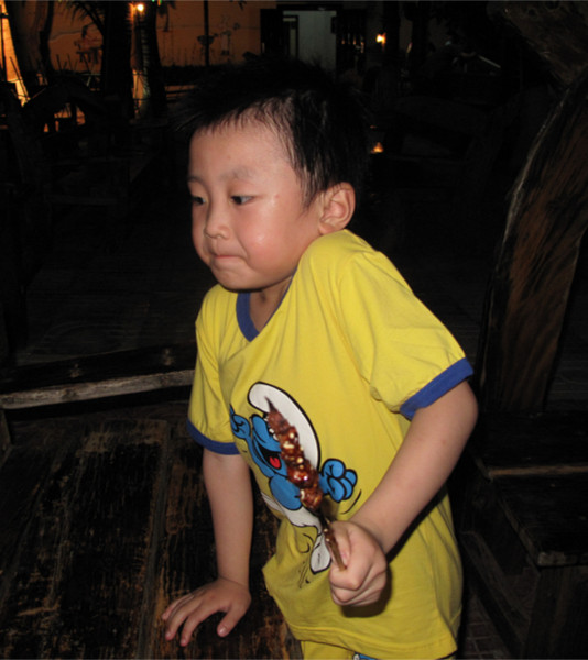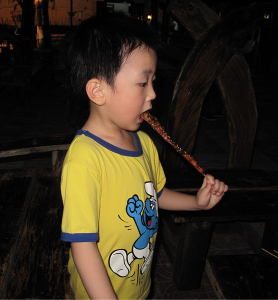 ![]() 在西岛的下午时,大家都在酒店休息,孩子们都在美美的睡觉呢,而我和罐爸还在讨论中午的饭钱实在是有点小贵,关键是还不好吃,42一小份的卤肉饭,还没配送汤,就是吃份蛋炒饭也要30,还不如就在酒店吃盒装方便面算了,才7元一个。 ![]() 可就是我们还在说这个问题时,朋友们已经来敲门了,告诉我们已经订好晚上的饭了,原来是酒店推出的烧烤,58一份,说的是够2人吃的,但要在下午5点前就提前交钱,预定好,晚上才有吃的,否则人家就下班了。他们是来拿钱的,因为我们每个人自己另外交了450的,也就是4500,这个公款是在我这里的保管的。呵呵 ![]() 这是菜单,原来在酒店的房间里就有,只是我们没注意看,我们这些朋友都是些吃货,所以对于吃的问题根本不用我操心的,自然就有人会很积极去看的,我只管付钱就是了。毕竟我是管帐的,呵呵 ![]() 烧烤是晚上8点就可以吃了,正好外面已经是完全黑下来了,其实这个烧烤吧就在酒店的门口,只是白天都没注意看,晚上开着彩灯,看起来就很有气氛了。 ![]() 竟然还可以看投幕电影,虽然是小型的,也是很不错了。 ![]() 哈哈,小妹妹在调皮,被她妈妈吵了,不高兴呢,罐罐赶紧上前去哄去了,说真的,罐罐还特别喜欢这个小妹妹,而这个妹妹的爸爸和罐爸的关系又是特别好的同学,他们认识起码有20多年了,小学就在一起的,而且他这个同学的生日和我相差2天呢,真的是很有缘分呢。呵呵 ![]() 2个小朋友跑到烧烤摊去看有什么好吃的,典型的吃货 ![]() 哈哈,烤好的肉串上桌咯 ![]() 另外三盘是茄子,看起来好像很辣,但对于我们吃辣椒长大的,这个就小儿科了,一点都不辣的 ![]() 罐罐一看有吃的,赶紧跑过了,拿了一根起来 ![]() 直接就放嘴里去了 ![]() 跟着就赶紧拿出来了,原来是被辣着了,看这表情,有意思吧。原来他拿了一串虾子,正好咬的是虾子的头部,肯定他不习惯吃的。 ![]() 自己发现好玩的地方,正好放有音乐,直接就跑到空地那里跳起来了 ![]() 还很会自娱自乐的 ![]() 后面烤好的陆陆续续的上来了 ![]() 这是蟹肉棒,豆腐干什么的 ![]() 秋刀鱼,鱿鱼,小馒头,还有玉米 ![]() 我是直接拿了两串馒头过来,罐罐喜欢吃这个的 ![]() 罐罐因为下午在酒店吃了盒饭的,所以晚上就吃了2串馒头,一串玉米和一串肉串,再加瓶水,小肚子就已经很饱了。看见小妹妹在木桌子上玩,他也跑上去跳舞去了。 ![]() 小妹妹在前面跳舞,他在后面跟着跳他的舞蹈,其实就是这次儿童节才表演的舞蹈,不过这次可是记得很熟练了。 ![]() ![]() ![]() 最后的结束动作,跳完了,下面的看官该打尝银子了。呵呵 ![]() 男的们,女的们,老的们,少的们,跟着我嗨起来吧。 ![]() 这次罐罐跳舞比原来大方多了,而且动作都全部能记住,不象去年什么都记不住,只知道站在上面看同学跳舞,所以,每年都不一样,一年比一年的进步大呀。 本作品未经作者许可不得转载,转载请征求作者意见。擅自转载使用,将保留追究其法律责任的权利!