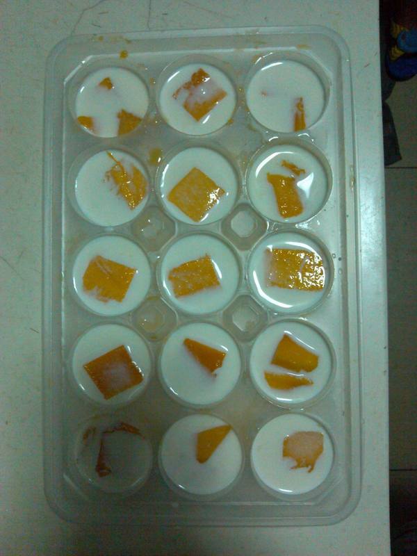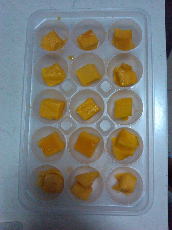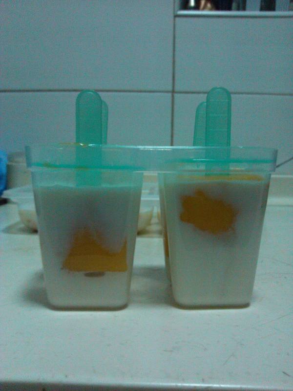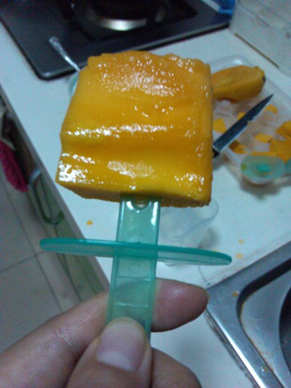 材料:奶粉、芒果、汤圆盒、冰棍模具