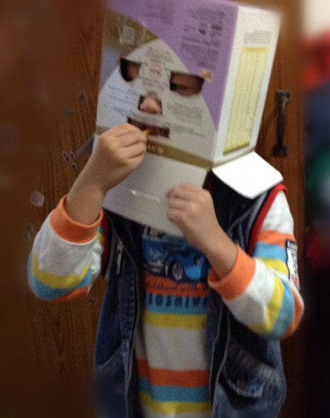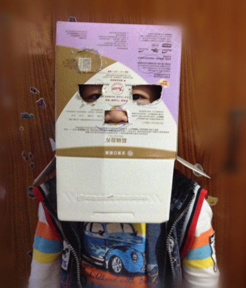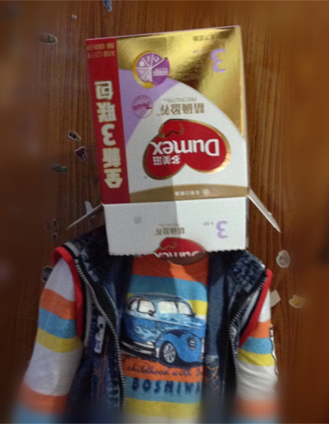 ![]() 其实以前都是随手就把这个空的奶粉盒子直接扔掉了,可这次这种看起来有点硬,干脆就拿来装罐罐的小玩具的零件,反正多一个这样的盒子也不碍事。可就在昨天晚上,吃完饭后,我就进房间玩电脑来了,等我过几分钟出去时,就看见罐罐不知怎么回事,就已经把空盒子直接套在他头上了,还在说看不到,看不到了。 ![]() 看他那样子,让我突然想起来,就给他来个简单的改造吧,看我是如何的来个废物利用。 这是最开始的样子,什么都看不到,也不是很透气,孩子也容易摔倒的 ![]() 这样看就知道大概了吧,可由于是第一次做,没有经验,第一次把眼睛部分画得太高了,以至于剪下来后,叫罐罐来试了一下,竟然是在额头部分,肯定不行了,又重新来剪,再来反复比较,修改,才大概合适呢,而上面剪错部分就用封口胶粘上,不然不是很好看。 ![]() 这次的效果就好多了,只是鼻子部位还要剪宽点,不然很不舒服的 ![]() 接着是要把小嘴露出来,罐罐还在一旁很着急的指挥呢,当然也很期待了,呵呵 ![]() 现在看整体效果要好多了,卖萌进行中 ![]() 咦,又被抓住了,小吃货竟然又在偷吃东西了。 罐爸看见这张相片是爆笑呀,觉得太好玩了,你们觉得呢? ![]() 虽然这次的手工只是临时的随手做的,但也获得了罐罐童鞋的喜欢,在他的眼中,总觉得妈妈好棒,时不时的就来夸奖我,或者是经常都说说‘妈妈我喜欢你,妈妈我最喜欢你了’。那小嘴巴真是比蜜得甜呀,哄得你是开心死了。 其实孩子们的快乐就是这么简单,只要你多陪着他玩,他就很容易满足的。这就是孩子 本作品未经作者许可不得转载,转载请征求作者意见。擅自转载使用,将保留追究其法律责任的权利!